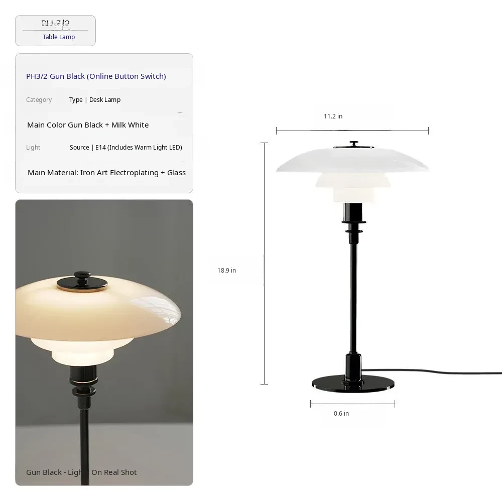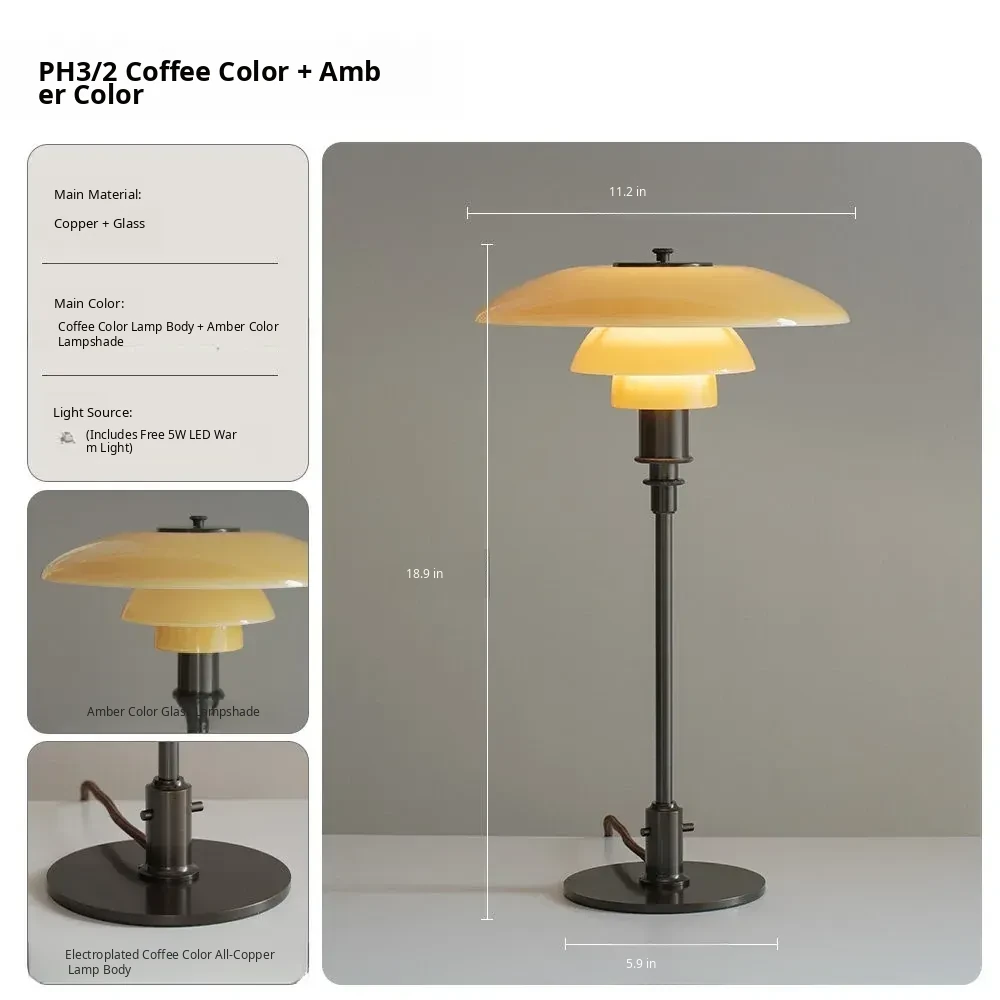 DAWN Home / Stylish PH3 Table Lamp - Danish Designer Must-Have, Trendy Bauhaus-Inspired Atmosphere Lighting for Your Bedroom