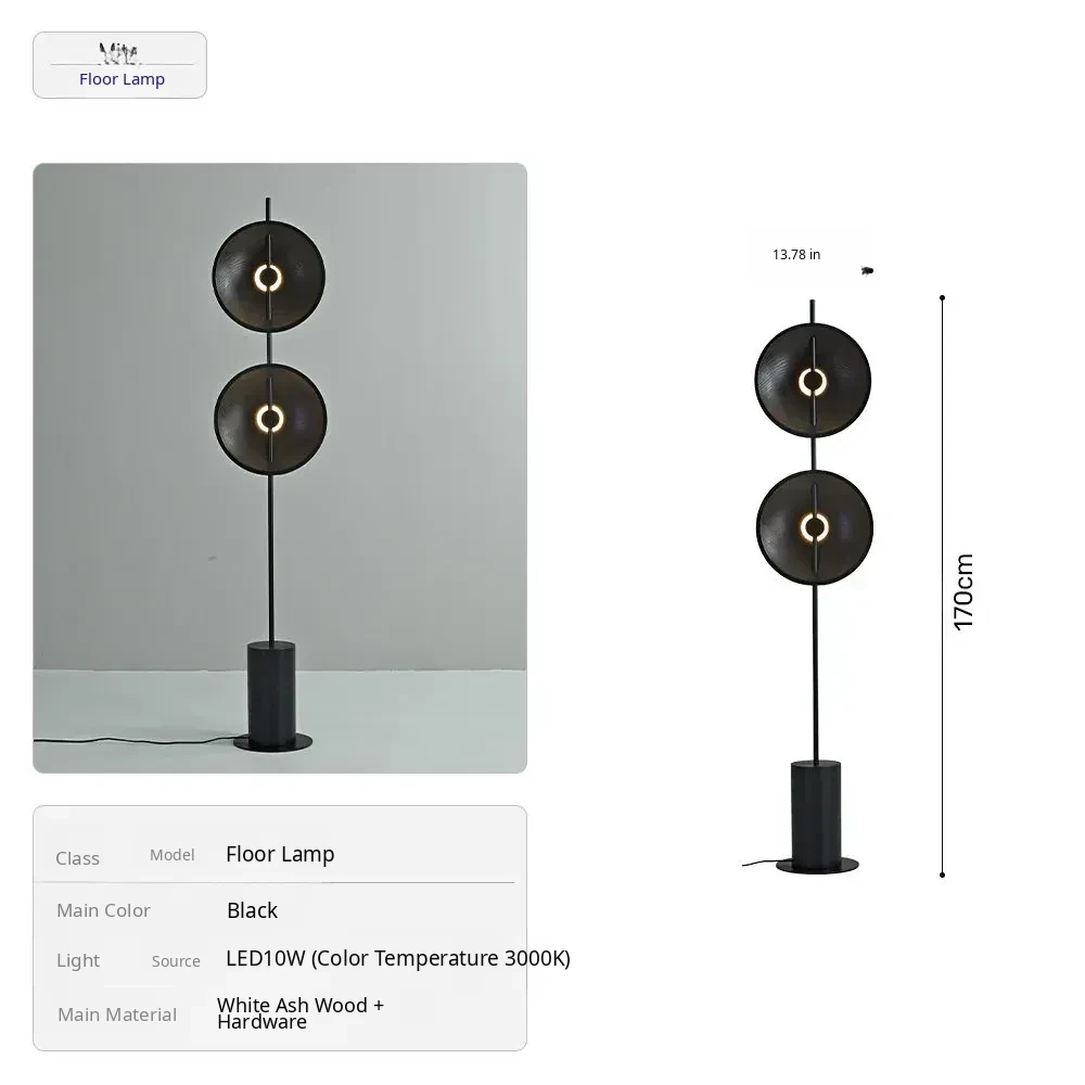 [White Ash] Floor Lamp Black - Height 66.93in [Export Quality]
