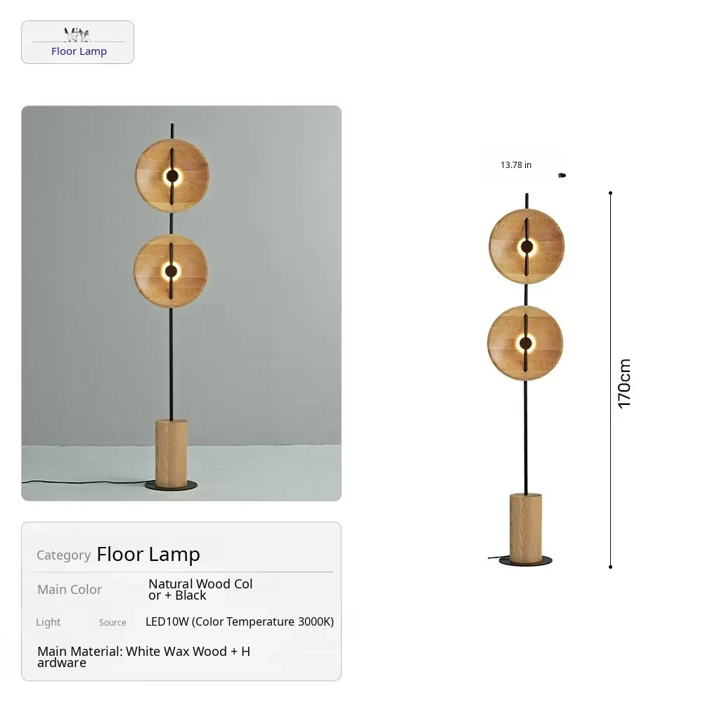 [White Ash] Floor Lamp Wood Color - Height 66.93in [Export Quality]