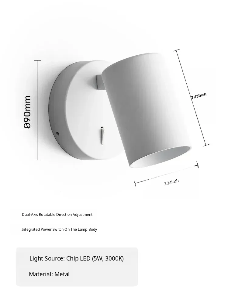 DAWN Home Minimalist Modern Bedroom Bedside Lamp - Nordic Style Adjustable LED Rotating Reading Wall Light for Your Unique Study Room