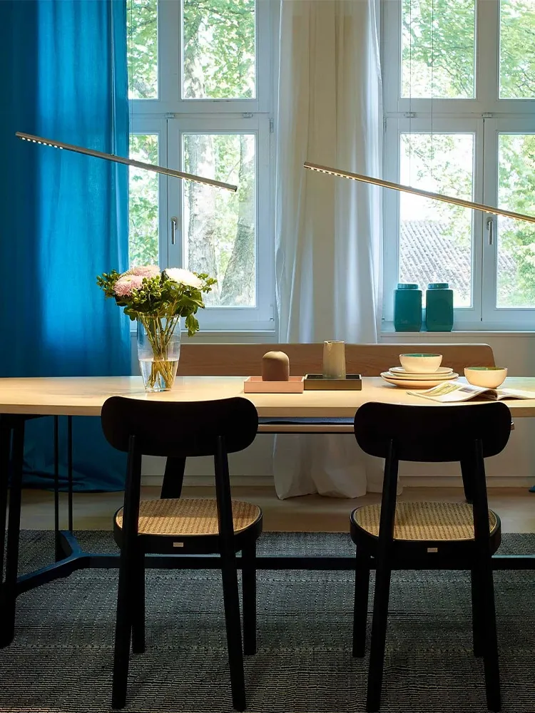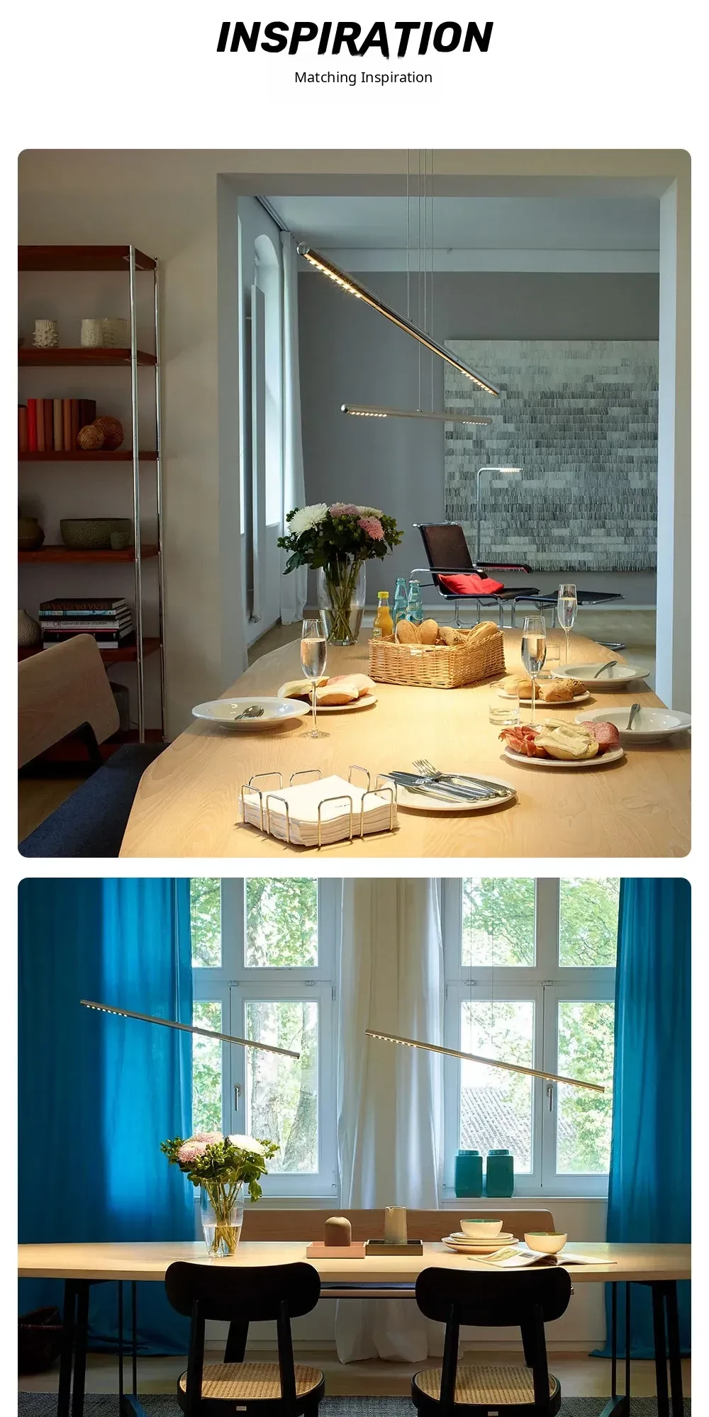 DAWN Home Minimalist Modern Long Linear Pendant Light - Bauhaus Style Metal Fixture for Study, Dining Room, and Bar Area
