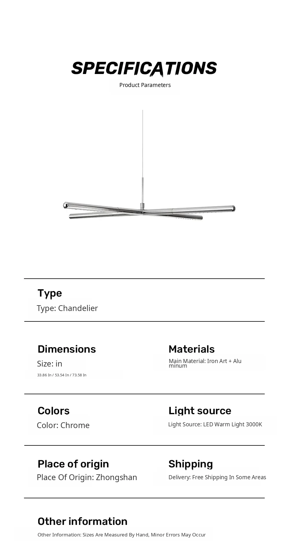 Chrome Color-Large Size (73.62in) Replica Regular Style(Suitable for 2.2- 118.11in Long Table)