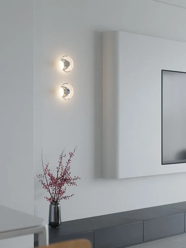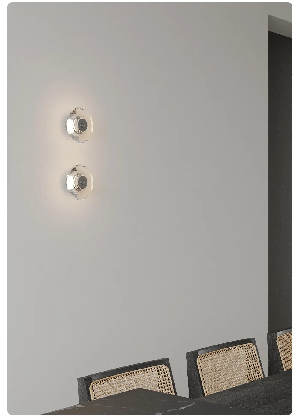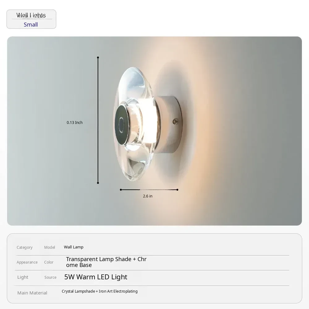 DAWN Original Italian Minimalist Round Crystal Wall Lamp - Modern Bedroom Bedside Light, Perfect for Hallways and Mirrors