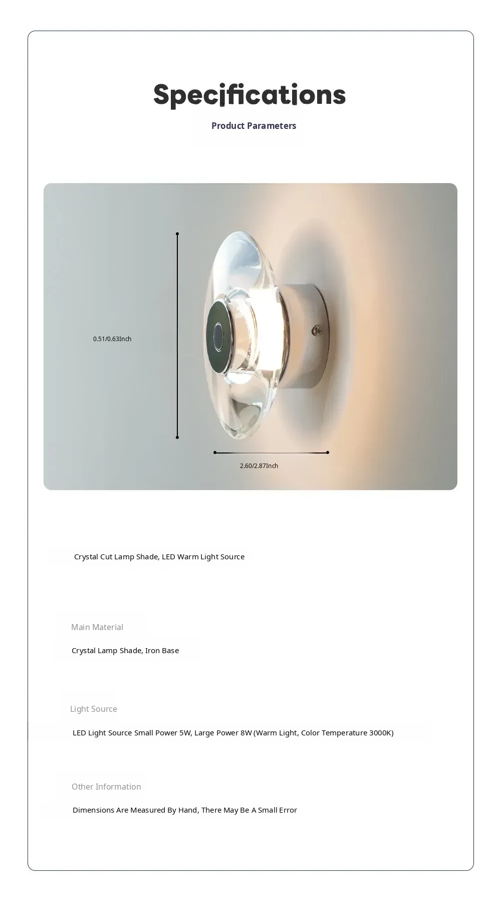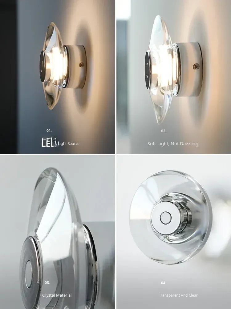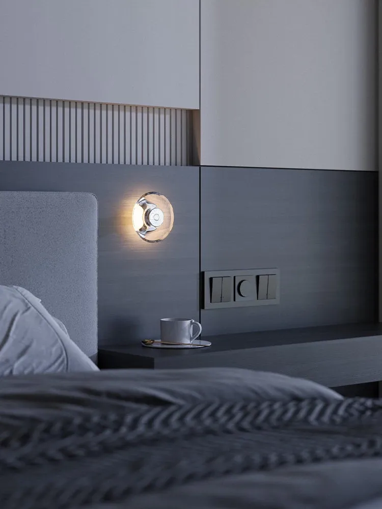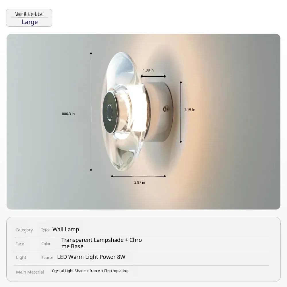 DAWN Original Italian Minimalist Round Crystal Wall Lamp - Modern Bedroom Bedside Light, Perfect for Hallways and Mirrors