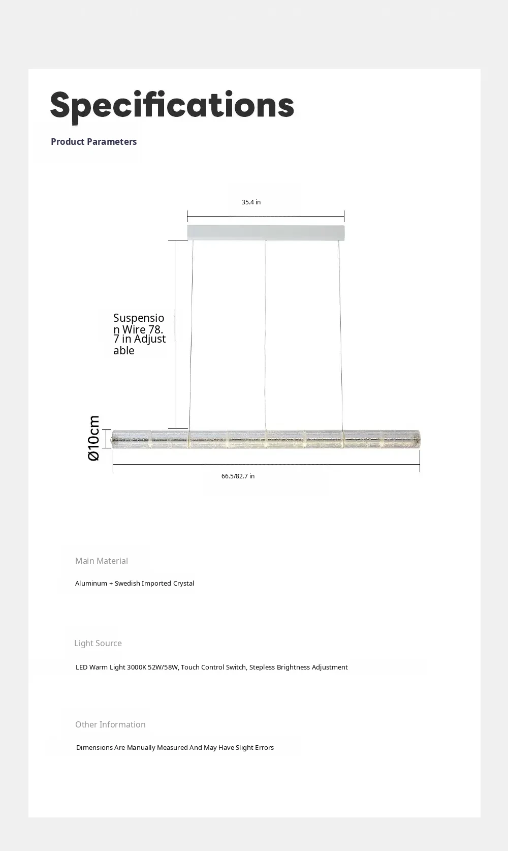 82.68in (2.3- 110.24in Long Table Recoinended) Touch Diining
