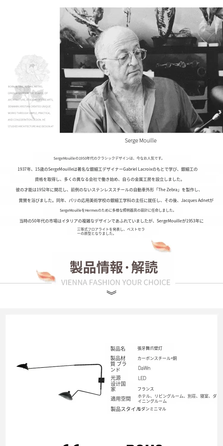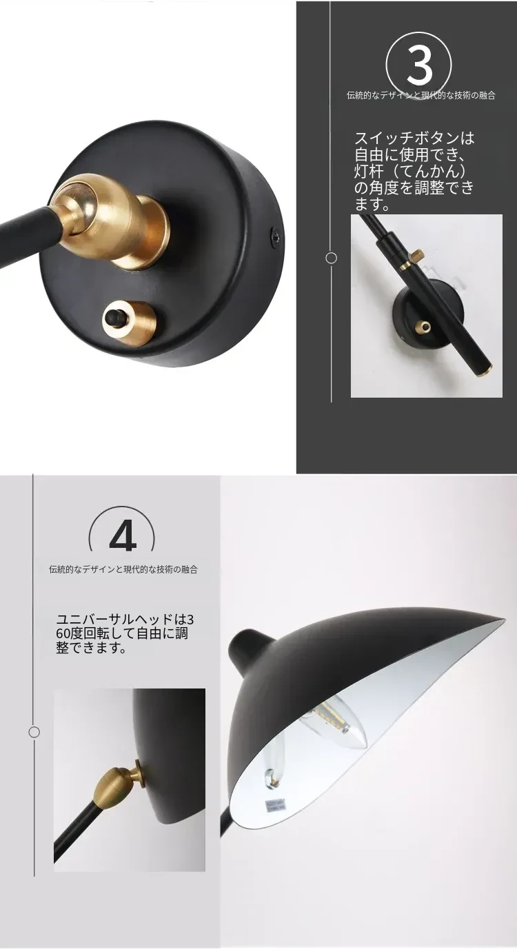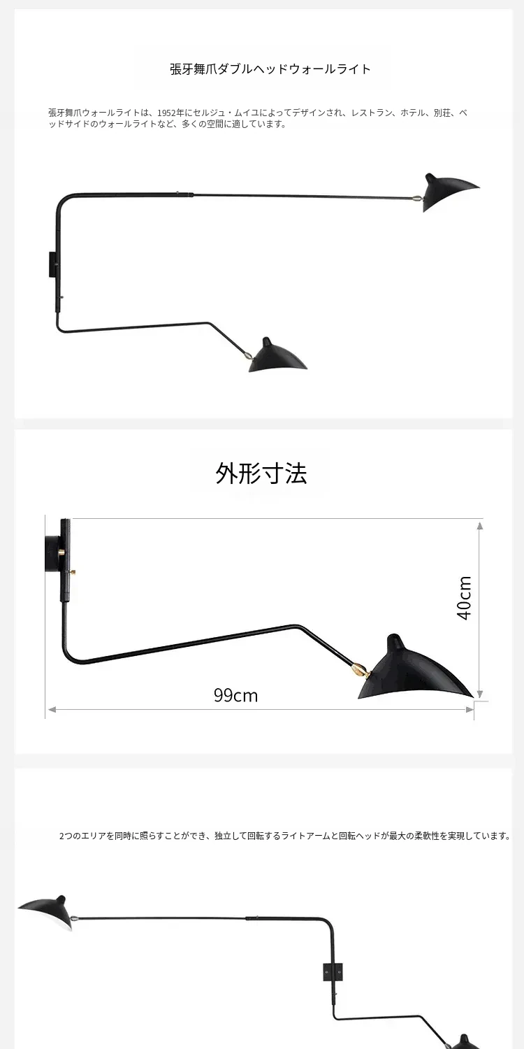 DaWnフランスデザイナーSergeMouilleの北欧モダンベッドサイドランプ - おしゃれな寝室、玄関、廊下、ホテルにぴったりの壁掛け照明!洗練されたデザインで、空間を一層引き立てます。