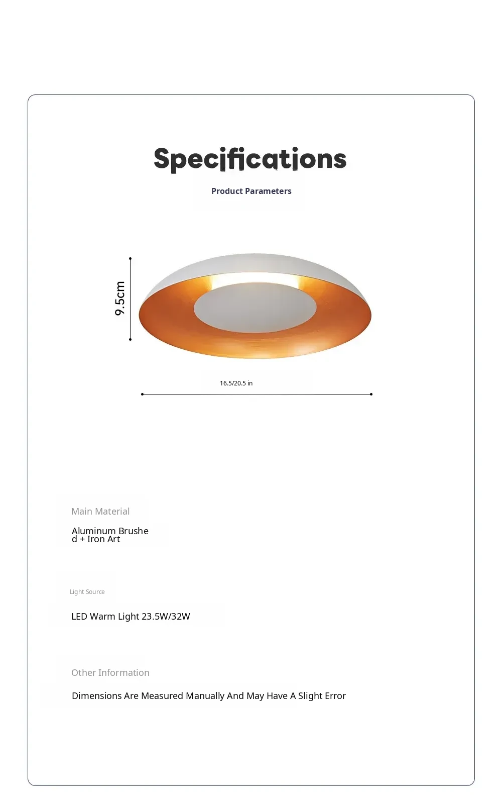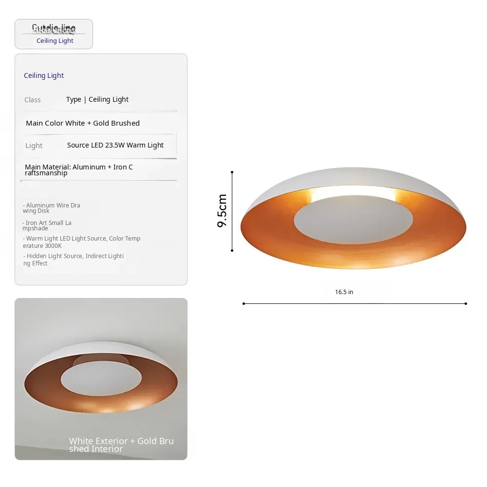 (White Outside + Gold Inside) Diameter 42Cm-23.5W