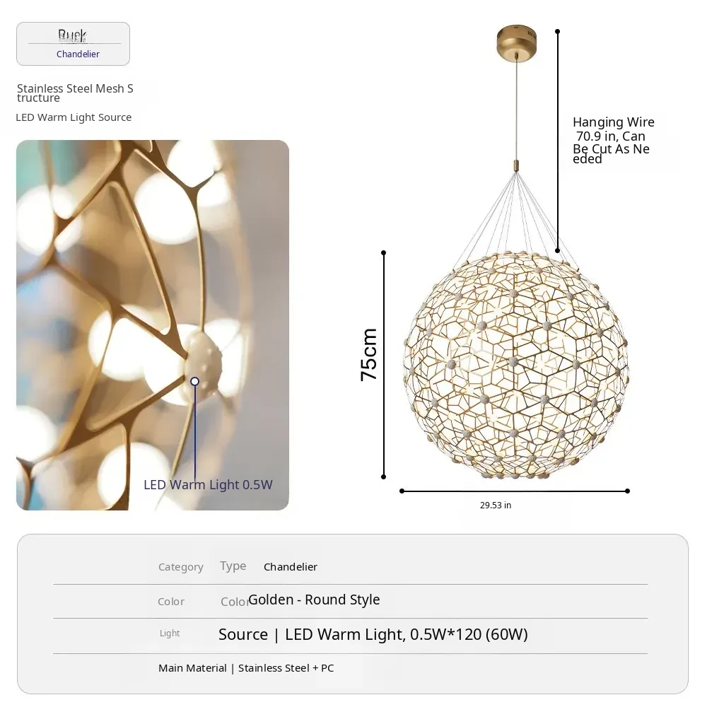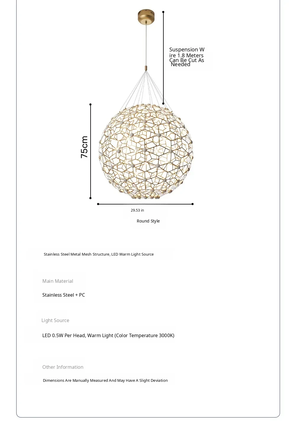 Gold-Round Style 29.53in [External Luminous Style]