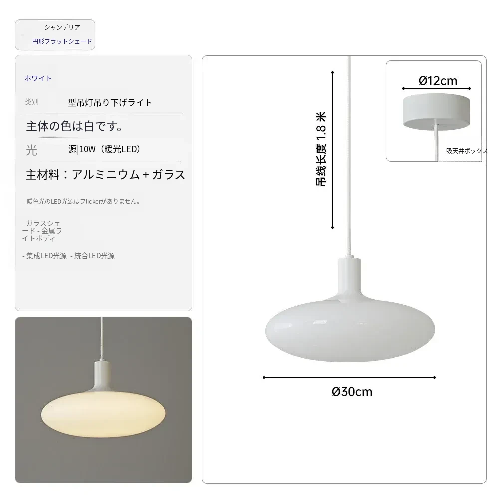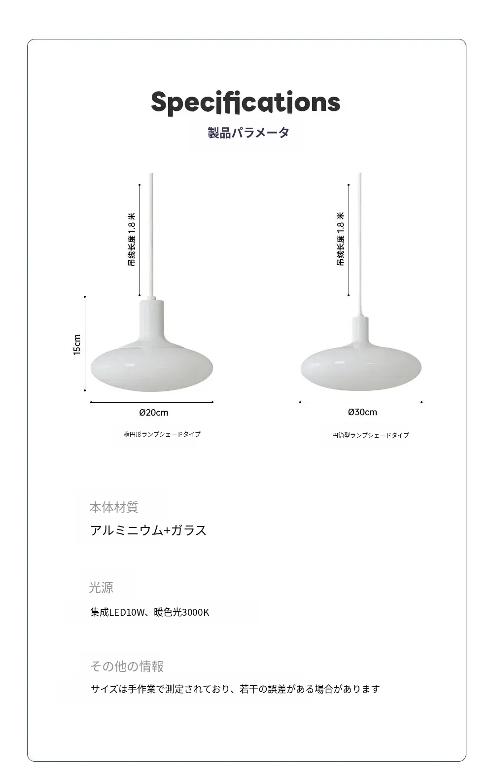 【ホワイトオーバル】直径20cm-10W