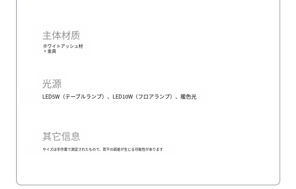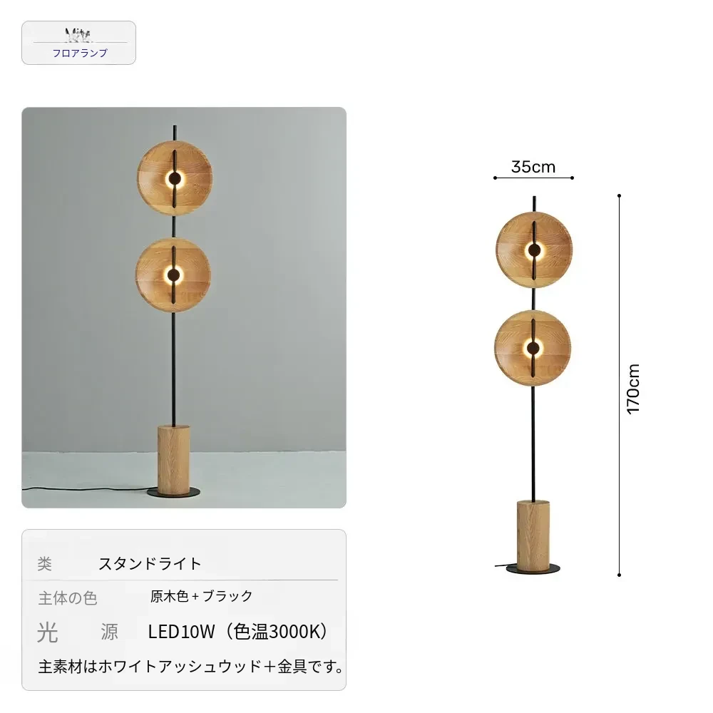 【ホワイトアッシュ】フロアランプナチュラル-高さ170cm【輸出品質】