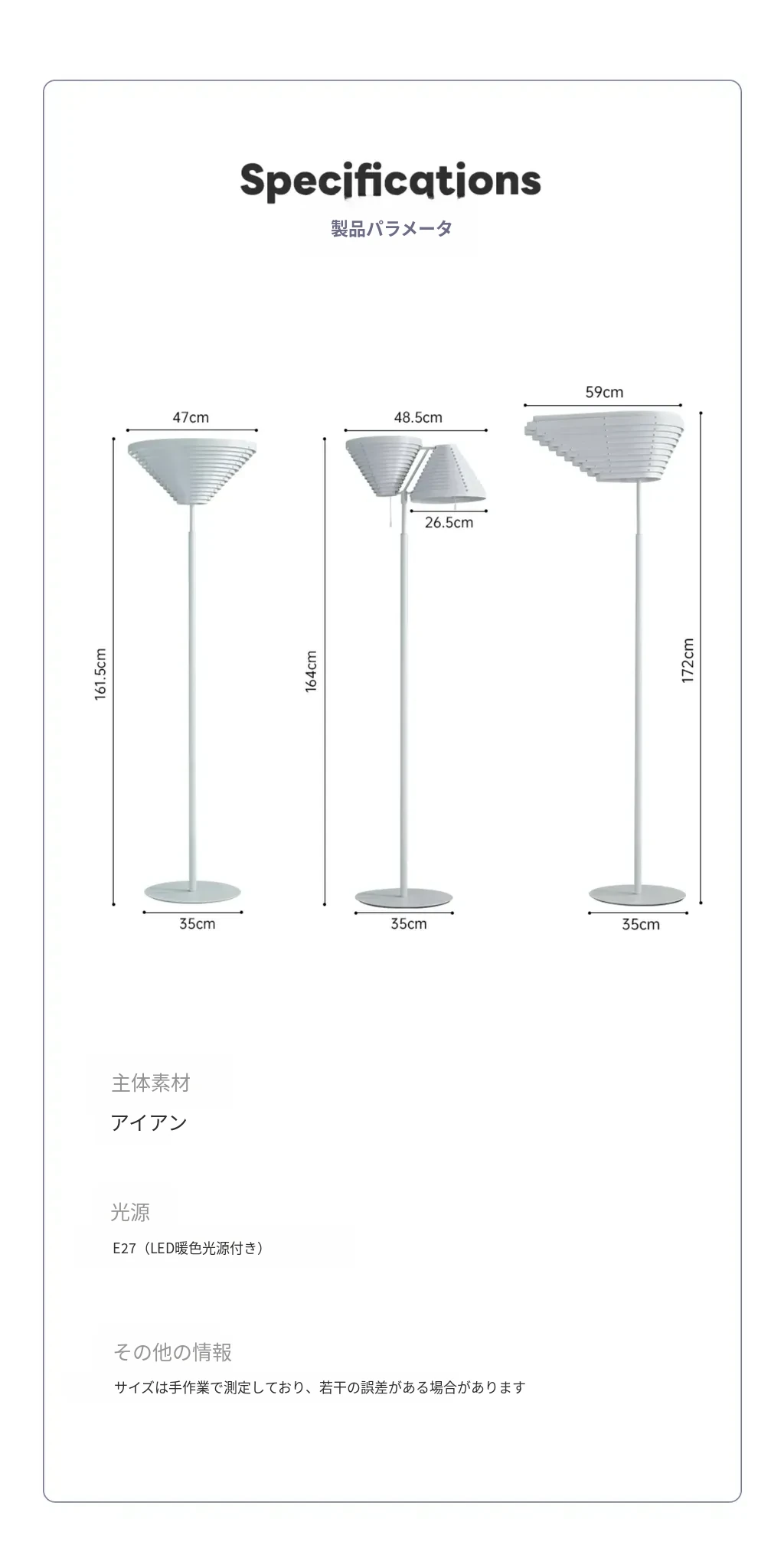 シングルヘッド白-高さ172*59cm【輸出品質】