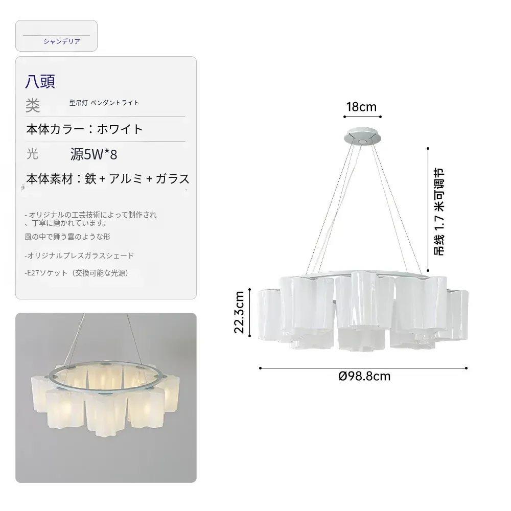 円環八頭シャンデリア D98cm オリジナル成型ガラス