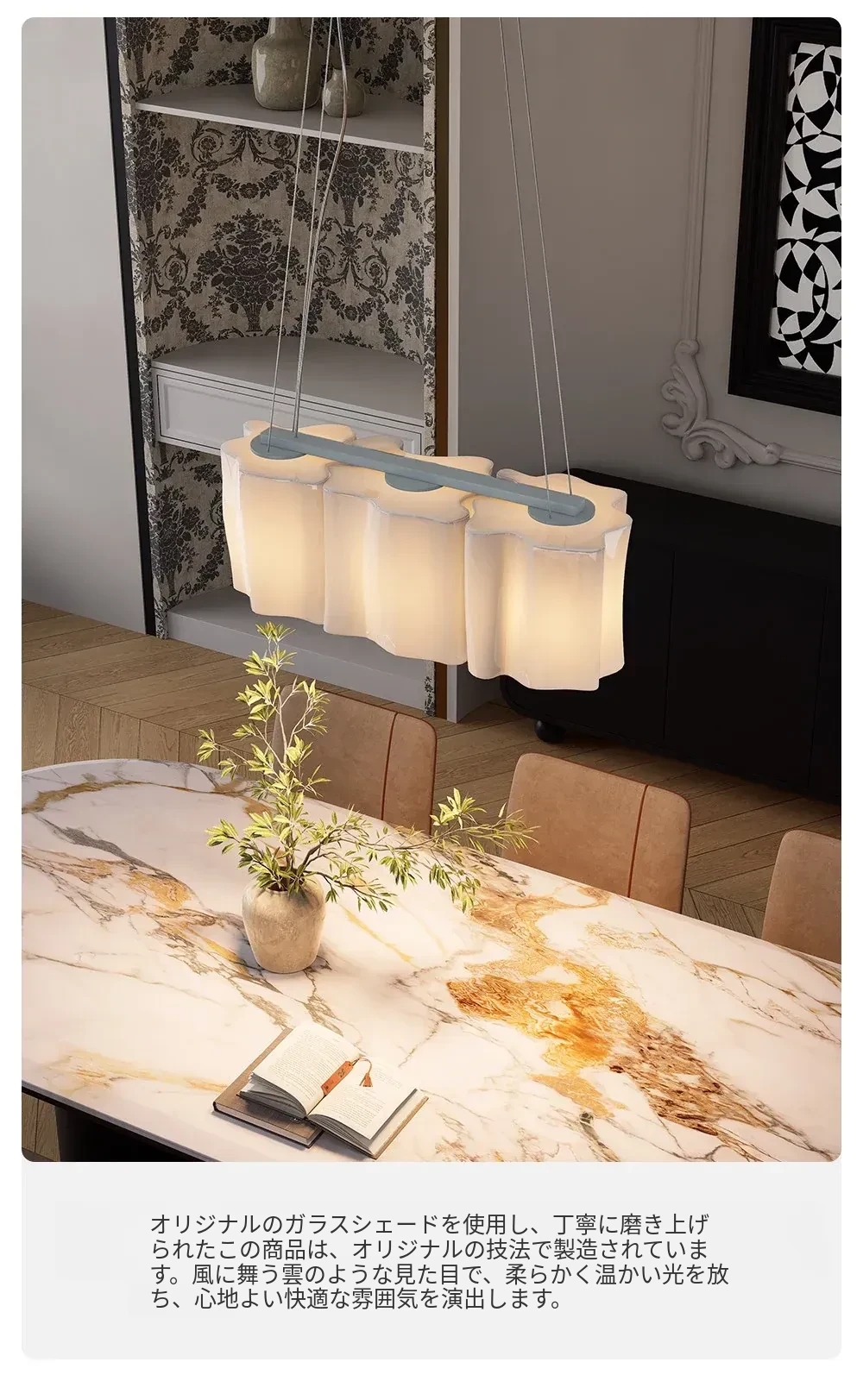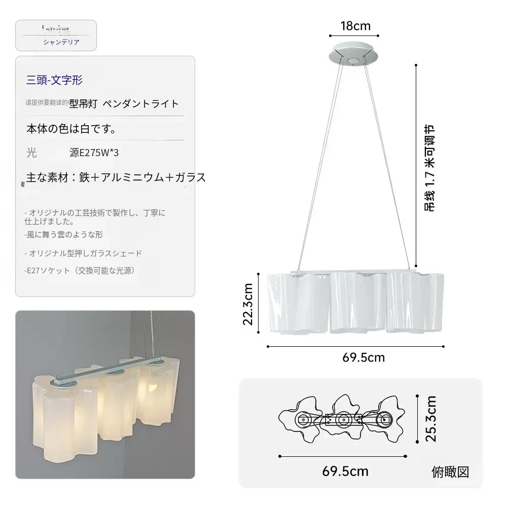 一字三頭シャンデリア D69cm オリジナル成型ガラス