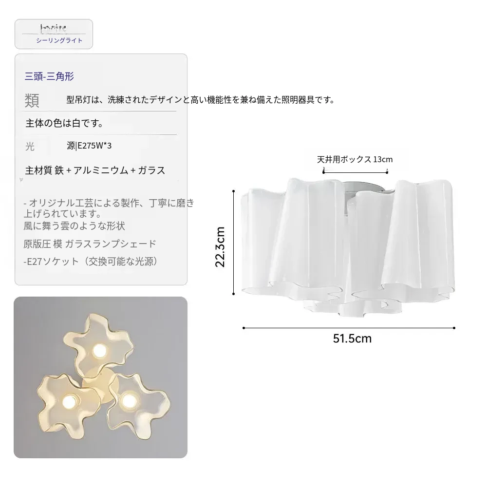 三頭天井灯 D51.5cm オリジナル成型ガラス