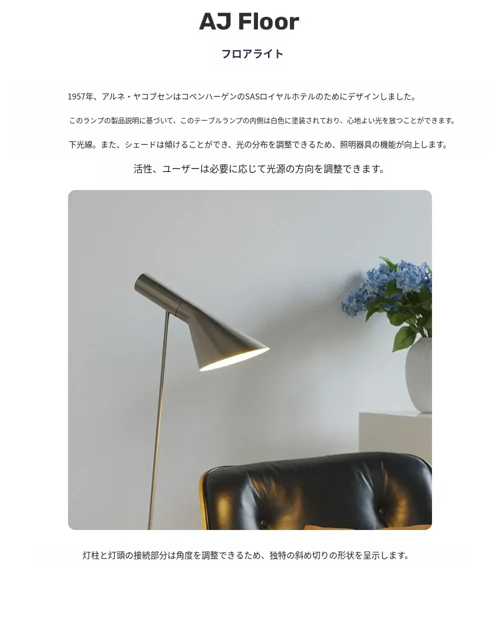 DAWNインテリア/アートフロアランプ - イタリアンミニマリズムの洗練されたデザイン、ソファ横やAJベッドサイドでの読書に最適!魅力的な光で心地よい空間を演出します。