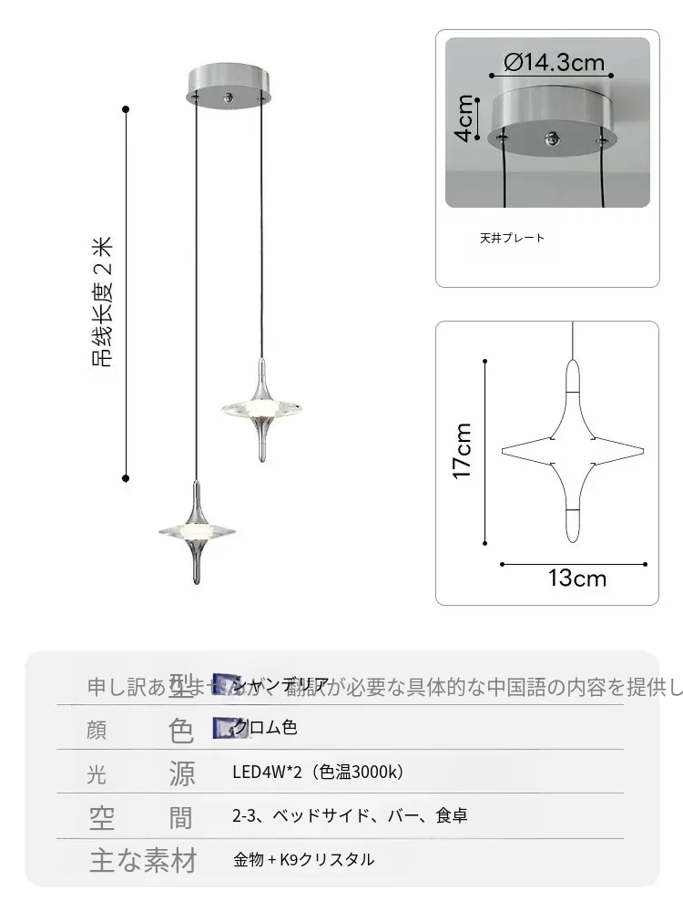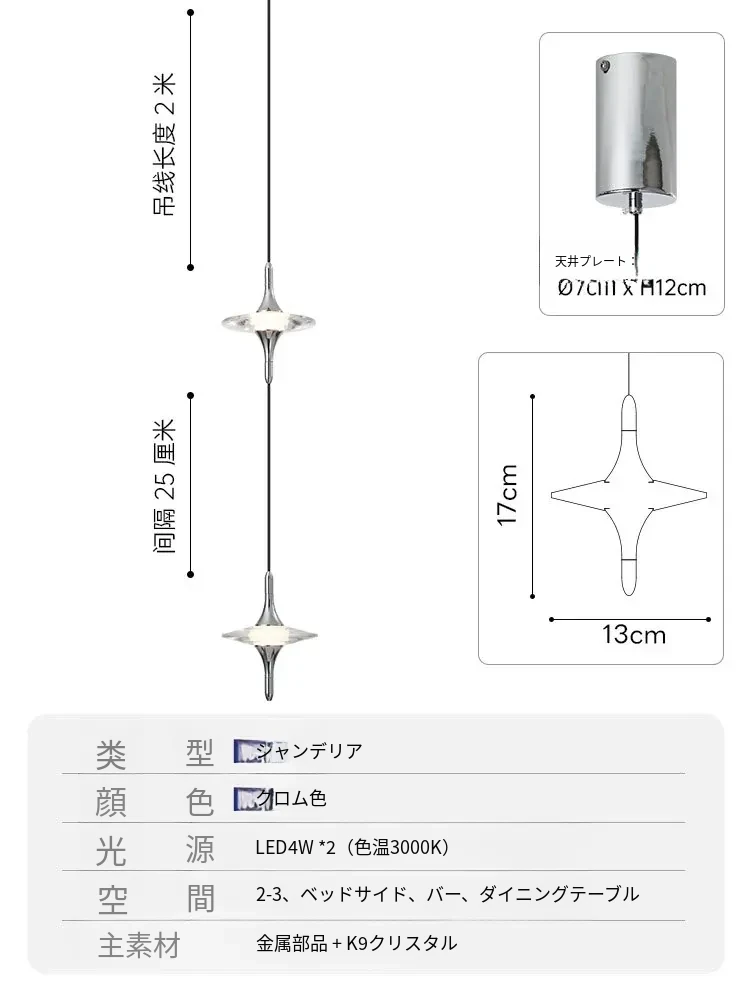 DAWNオリジナル / レストラン用アイランドペンダントライト - ミニマルな雰囲気を演出するアートデザインのバウハウスクリスタルバーライト