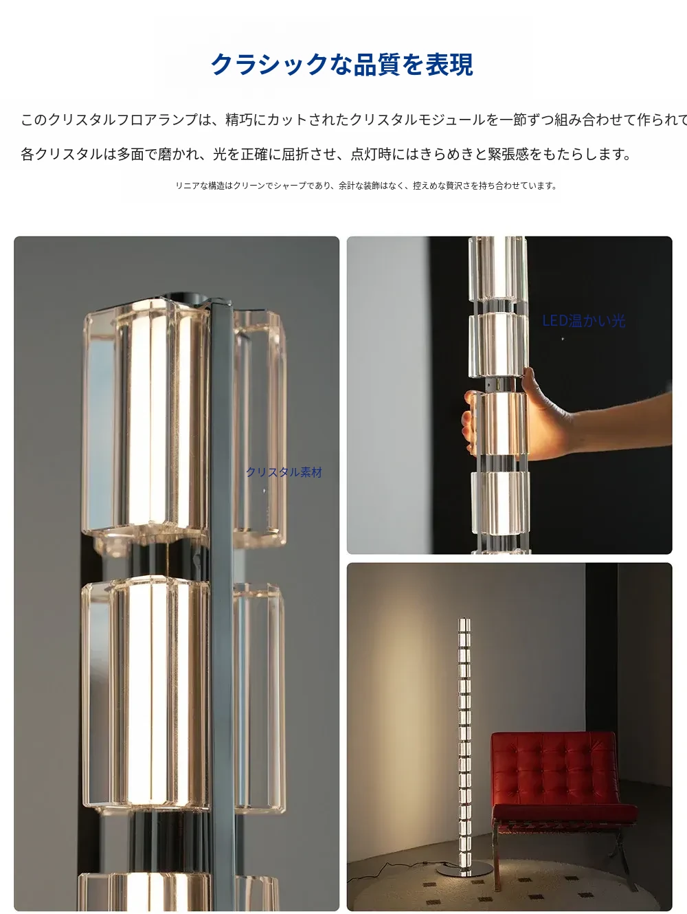 リビングルーム用フロアランプ ソファサイドにぴったり!高級感あふれるイタリアンミニマルアート フレンチラグジュアリー 水晶の雰囲気を演出するベッドサイドテーブル