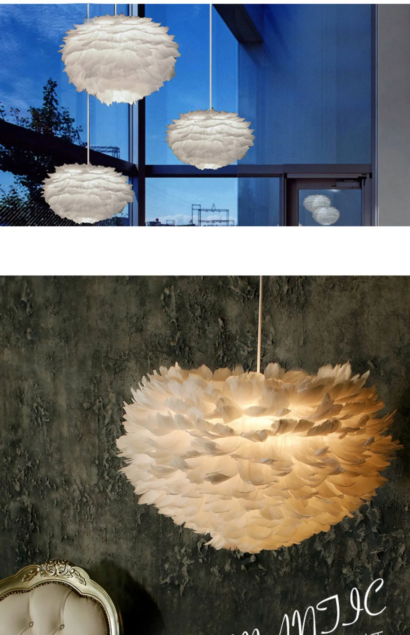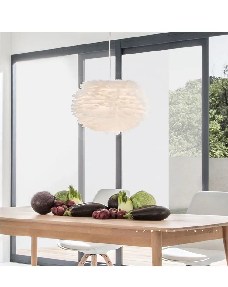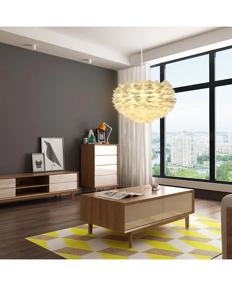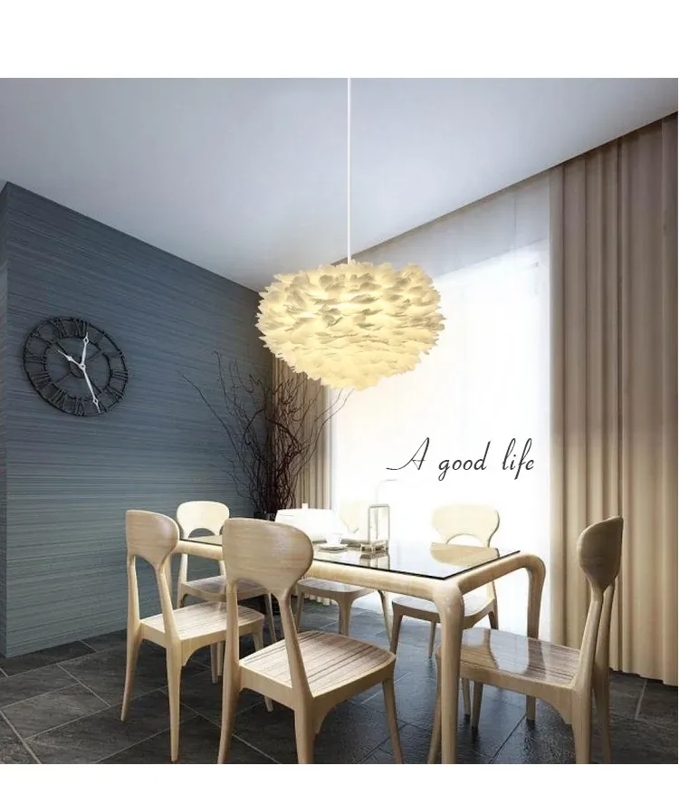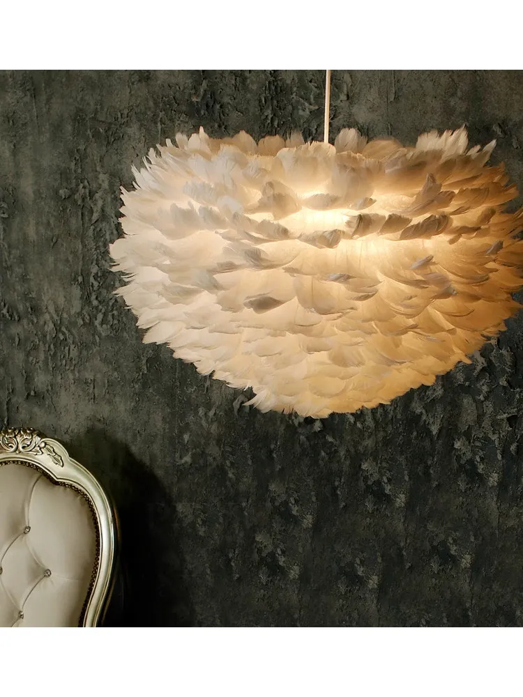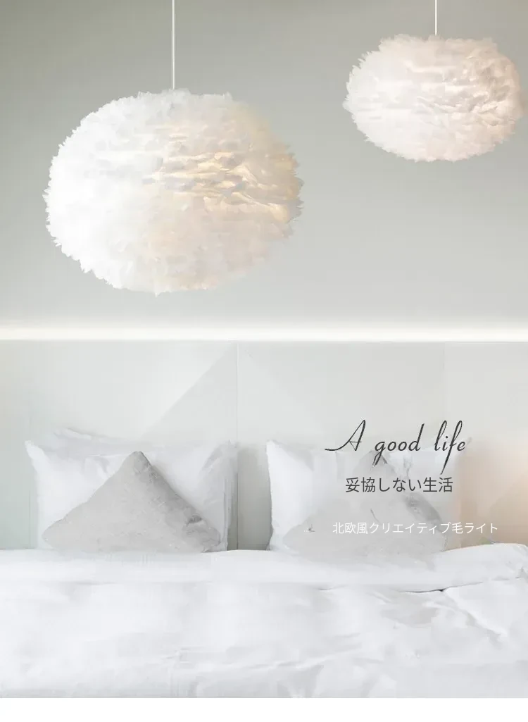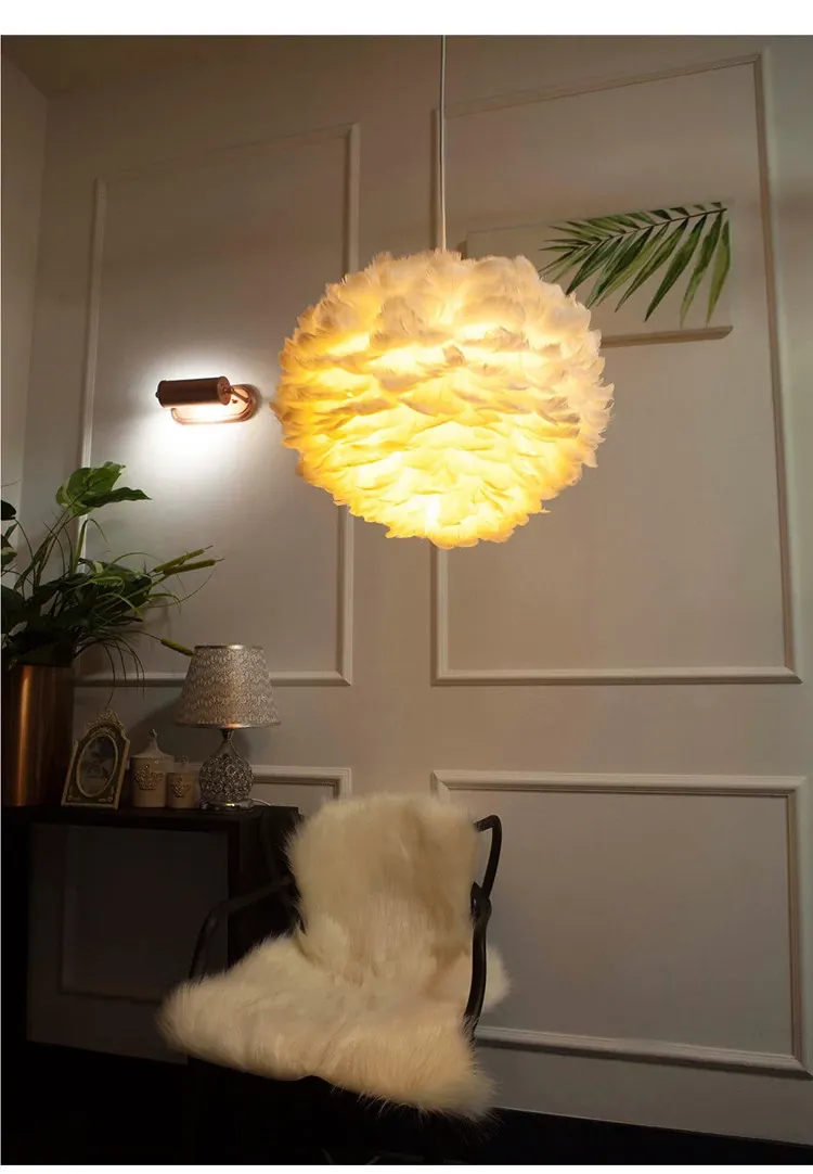 ふわふわ羽毛のシャンデリアで、子供部屋や寝室を温かくロマンチックに演出!シンプルでモダンなデザインが魅力的な北欧スタイルの個性的な照明。あなたのリビングを特別な空間に変えます!