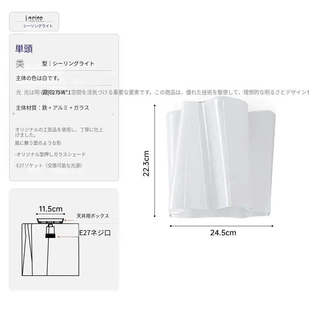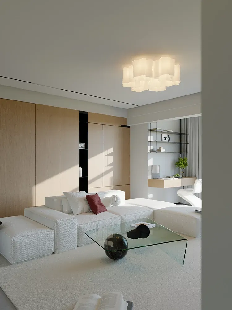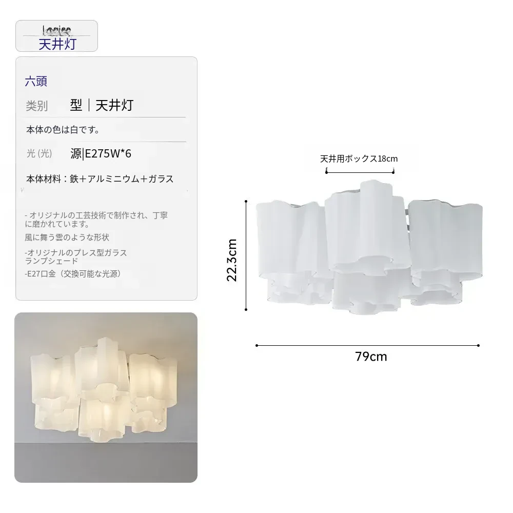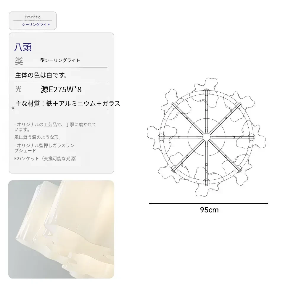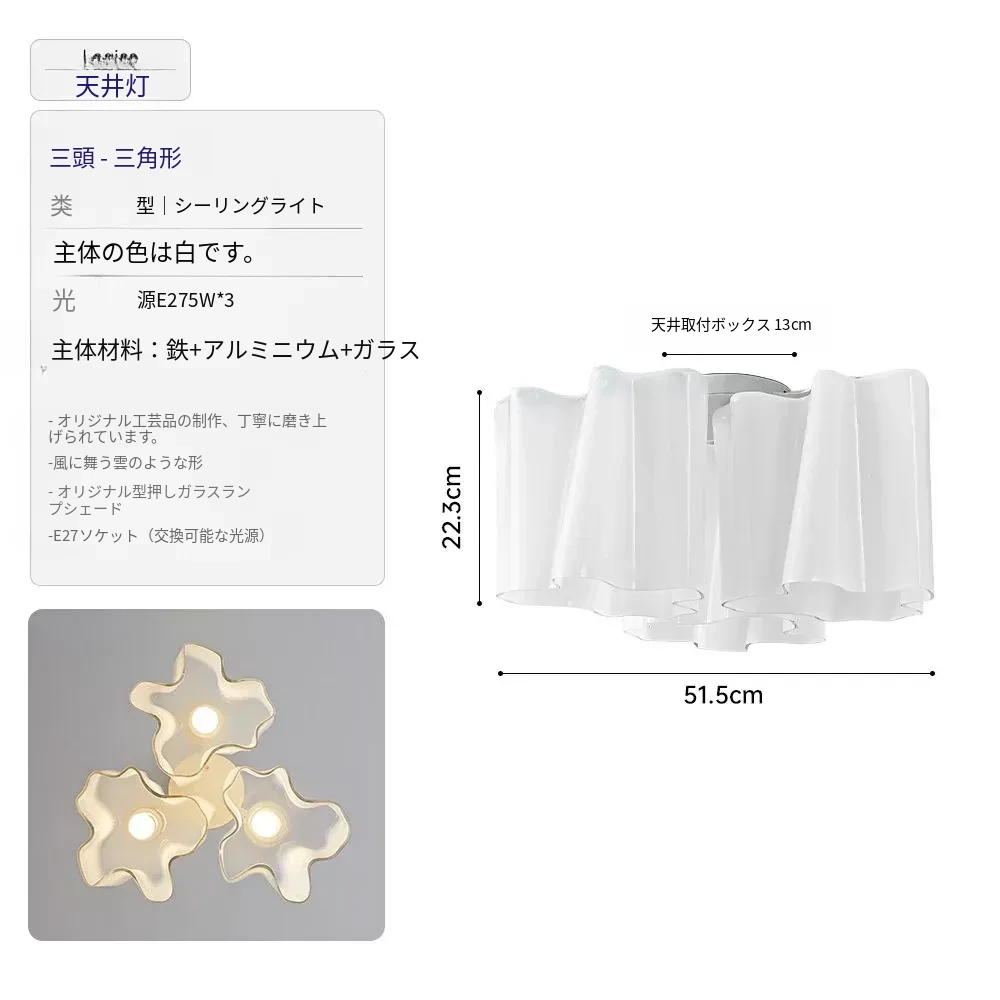 イタリア製クラウドフレンチシーリングライト - モダンでありながらアンティーク風、リビングルームやダイニングルームにぴったりの軽やかなラグジュアリーガラス照明!主寝室にも最適な洗練されたデザイン。