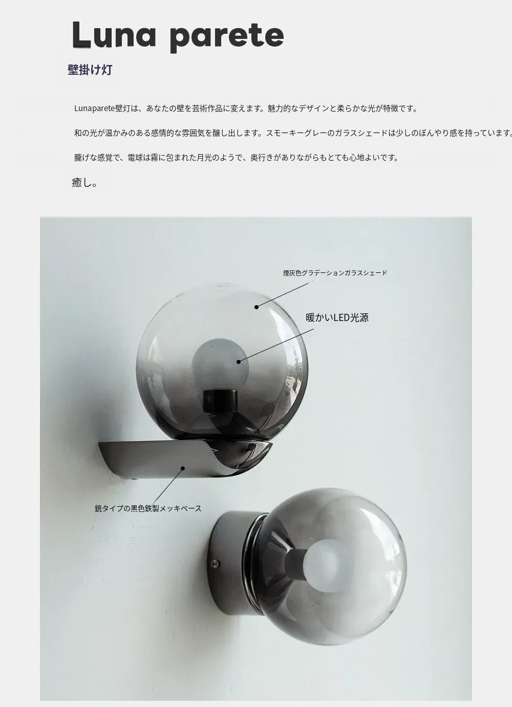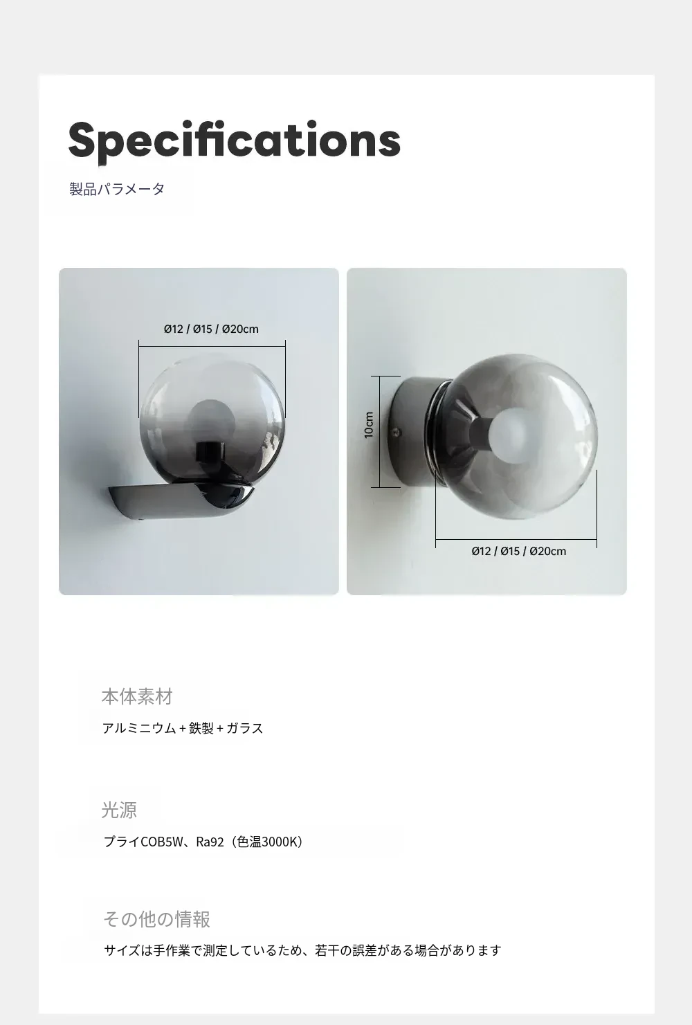 【壁灯タイプ】パールブラック 直径12