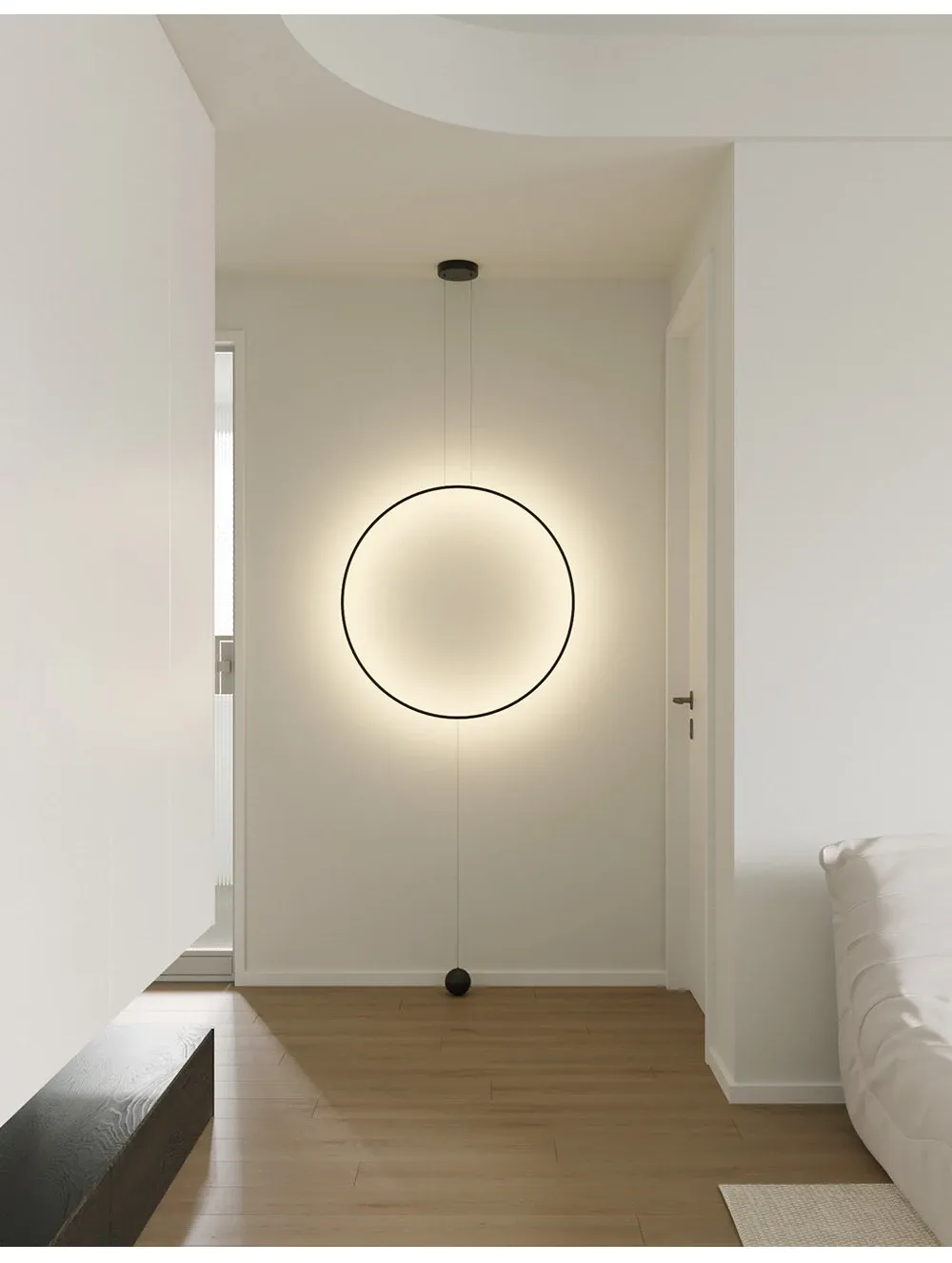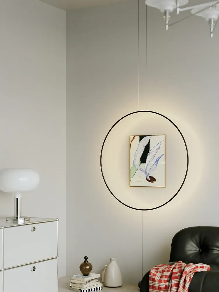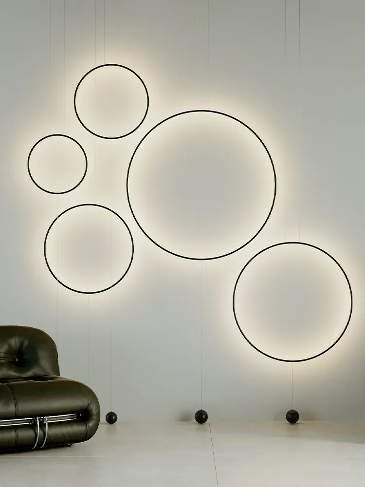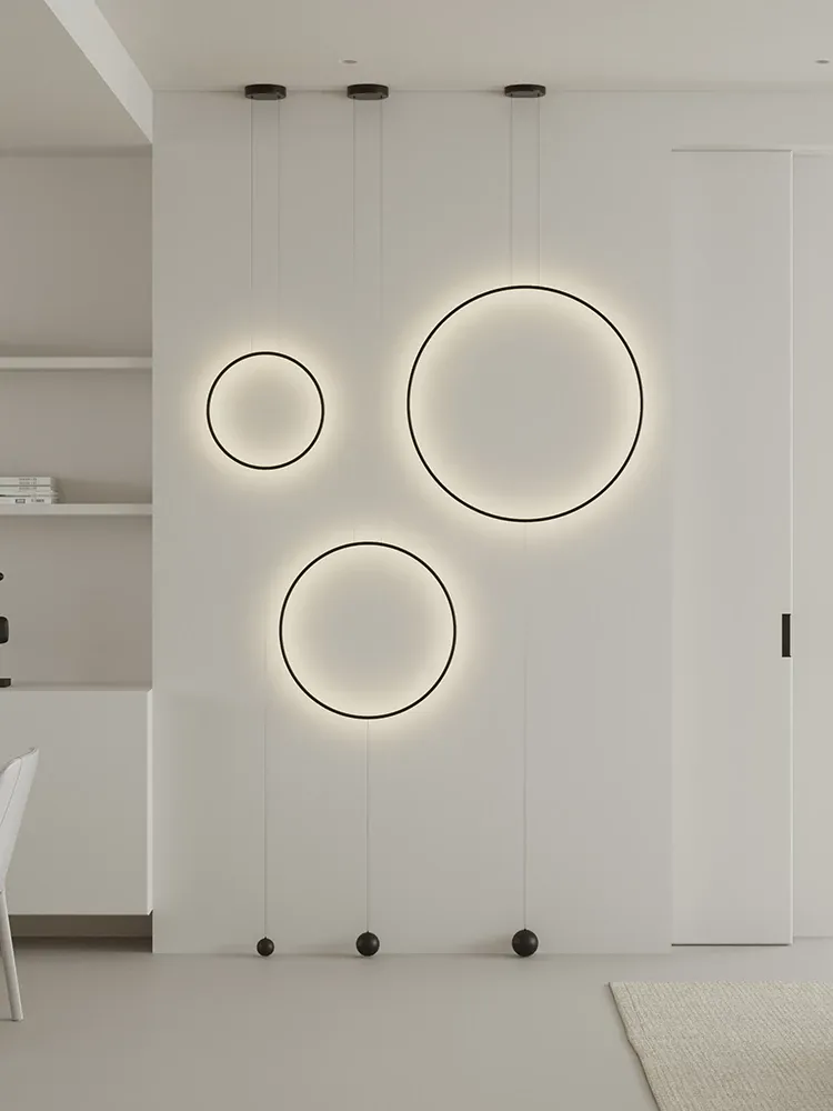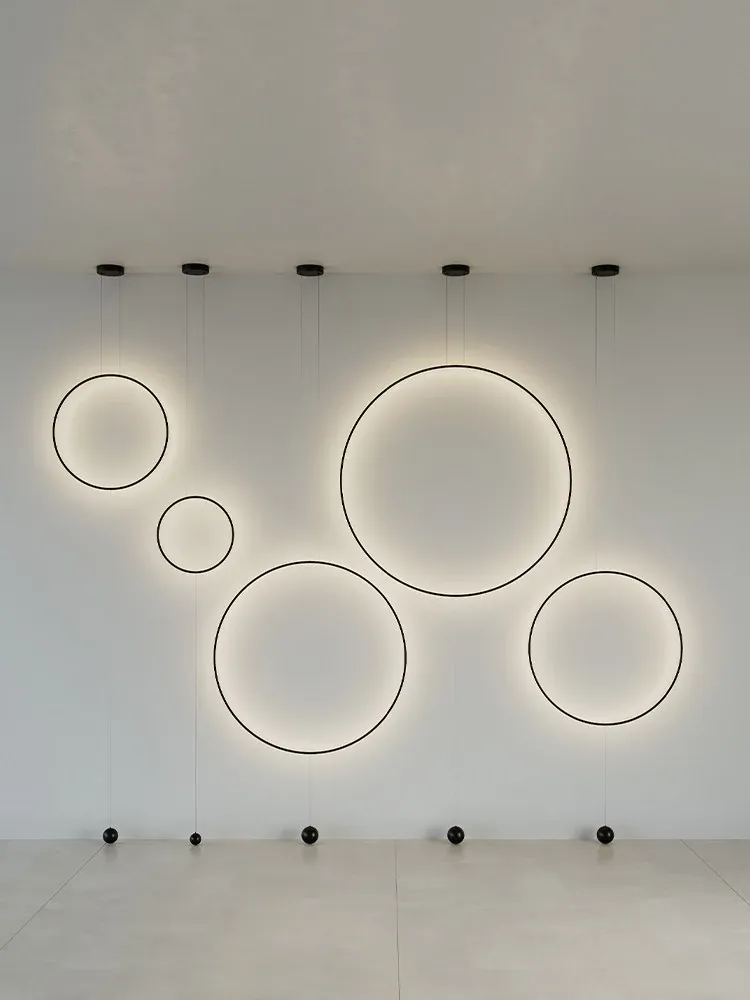 イタリアンミニマルモダンデザインの玄関・廊下装飾用ムードライト!スタイリッシュなサンプルルームにぴったりの個性的な光環ペンダントライト。シンプルで洗練された雰囲気を演出し、空間を華やかに彩ります。