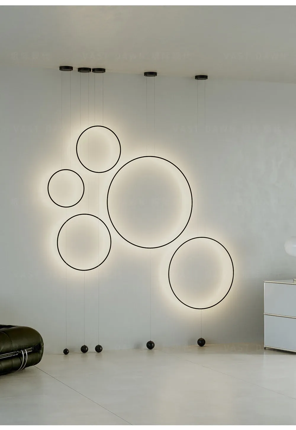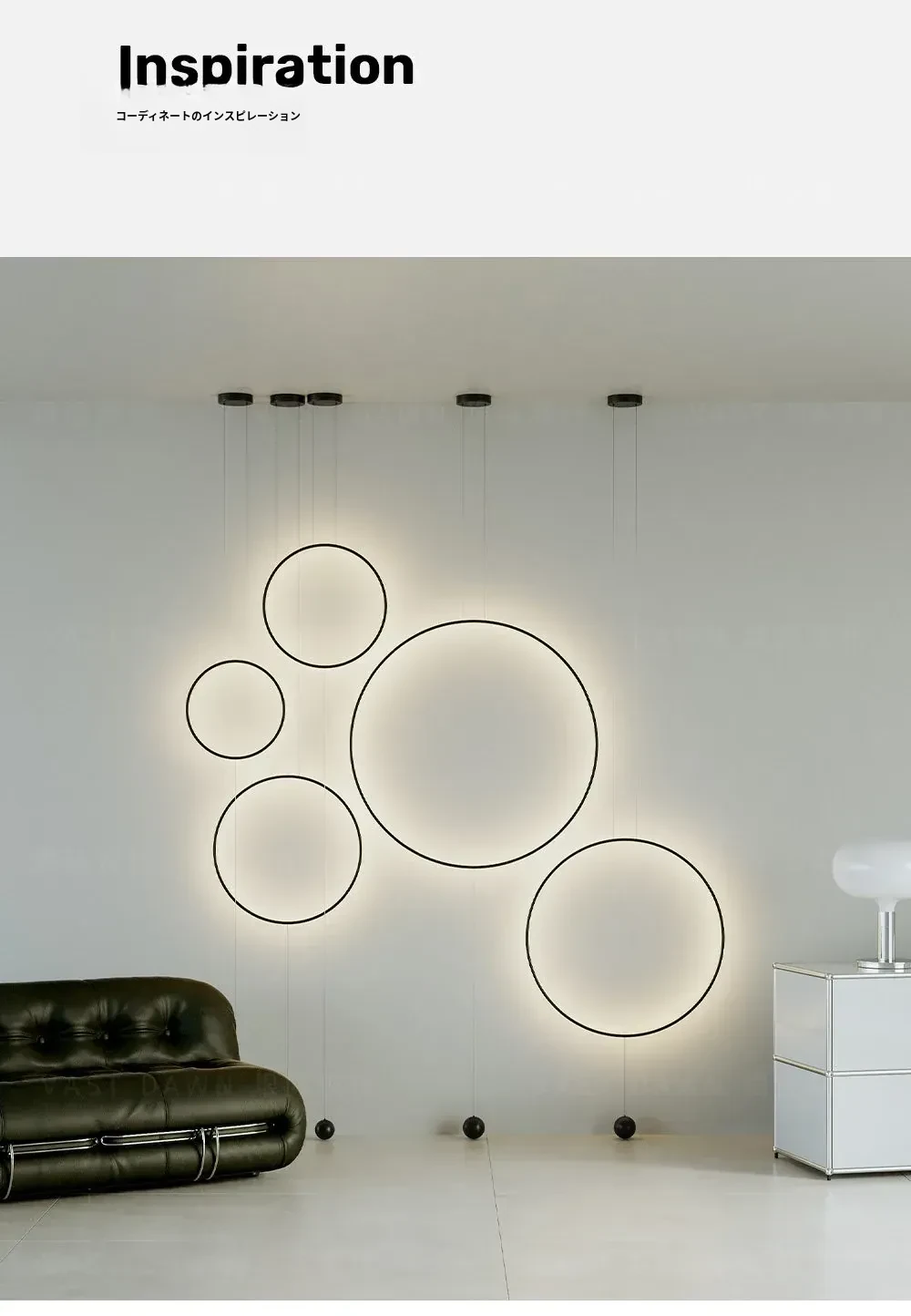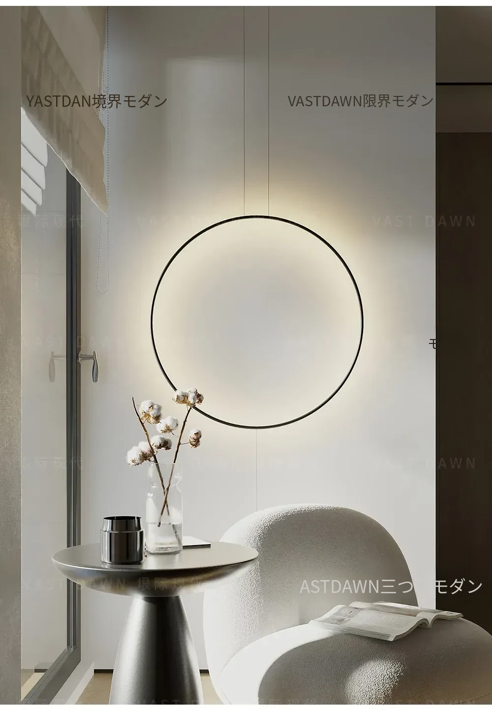 イタリアンミニマルモダンデザインの玄関・廊下装飾用ムードライト!スタイリッシュなサンプルルームにぴったりの個性的な光環ペンダントライト。シンプルで洗練された雰囲気を演出し、空間を華やかに彩ります。