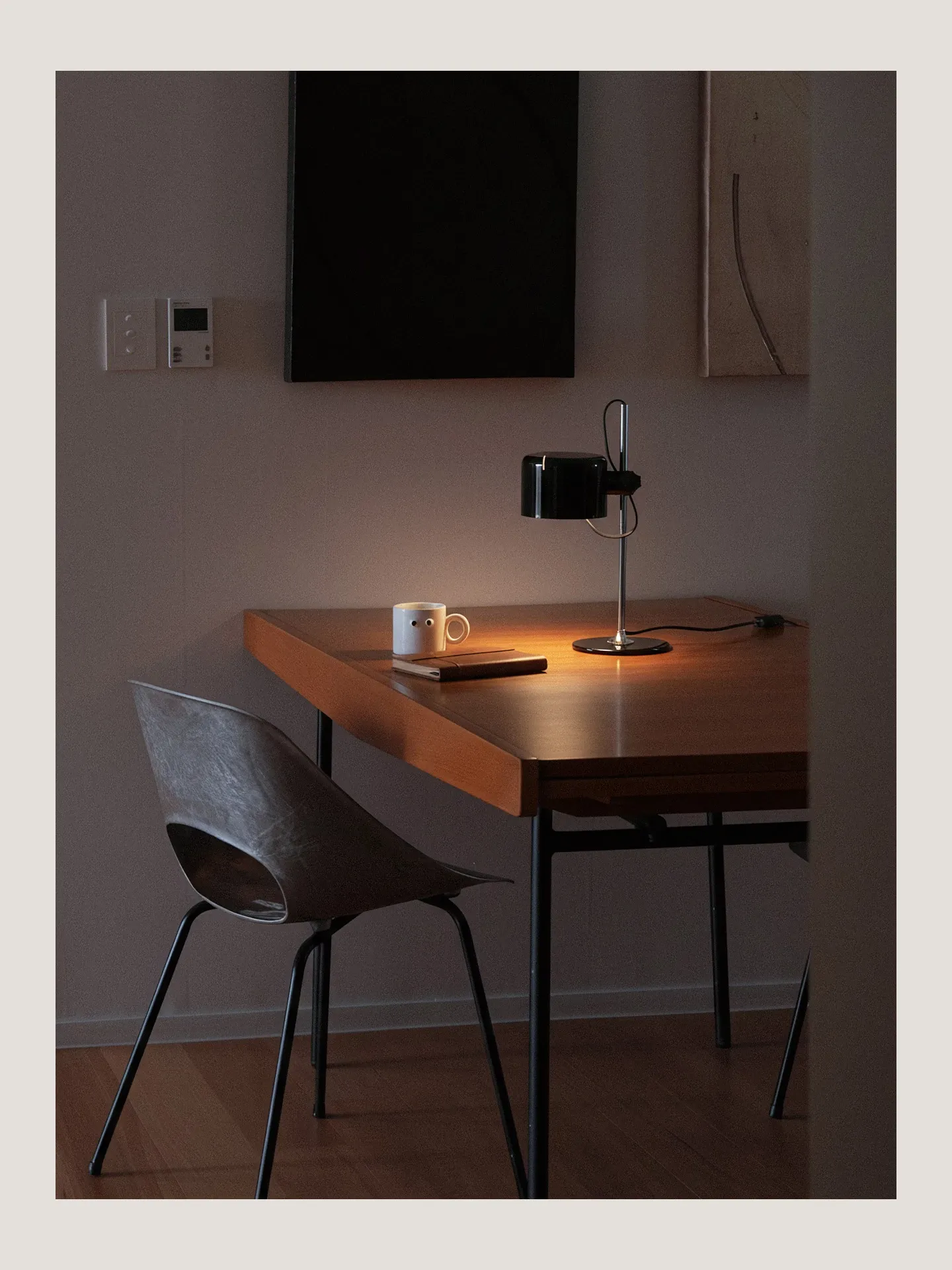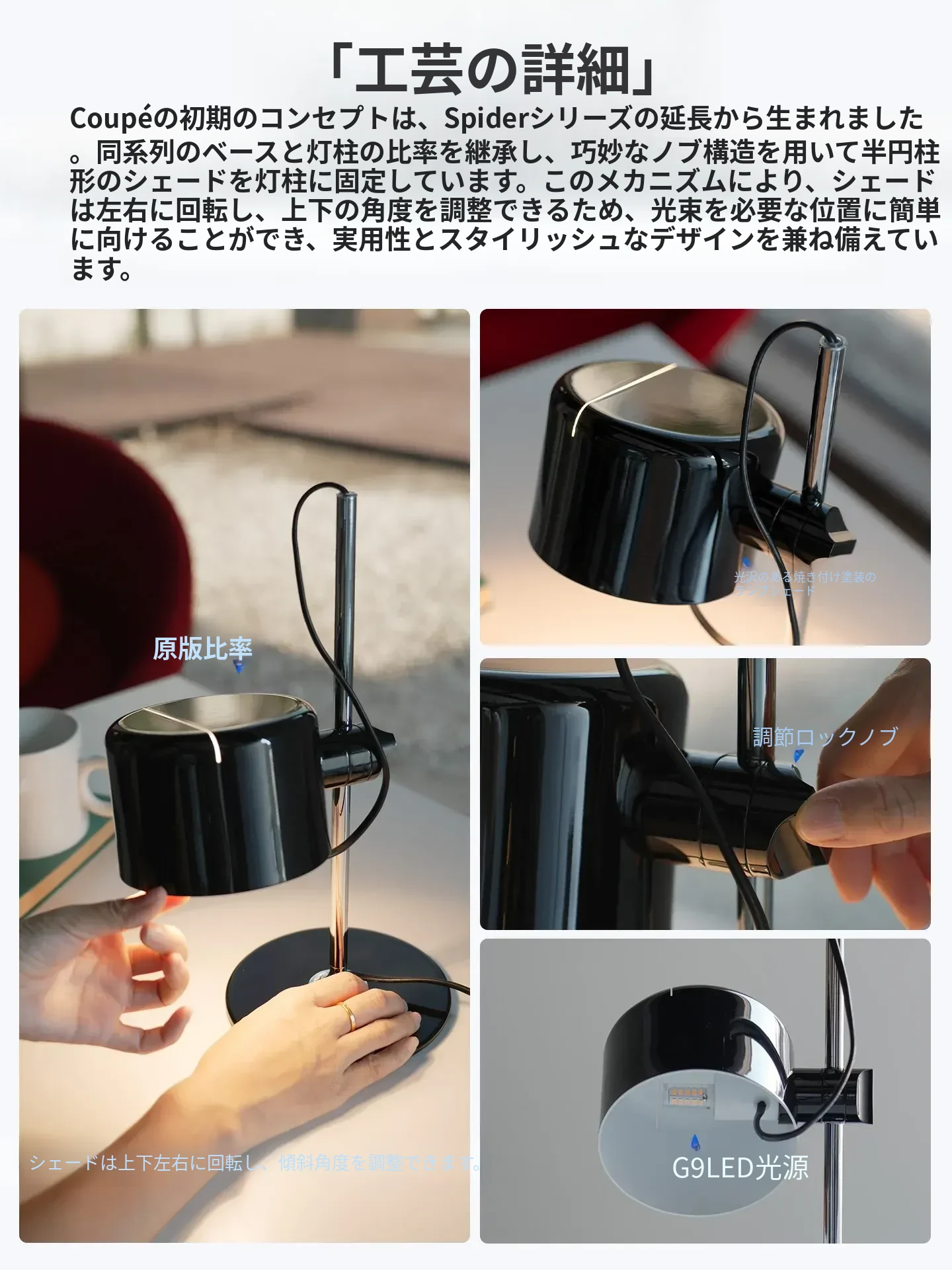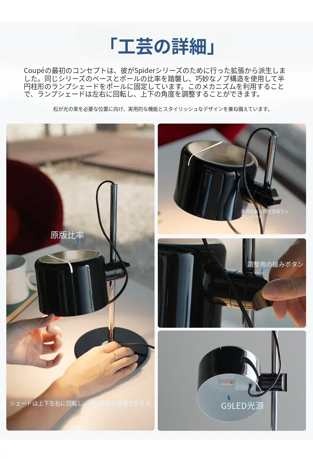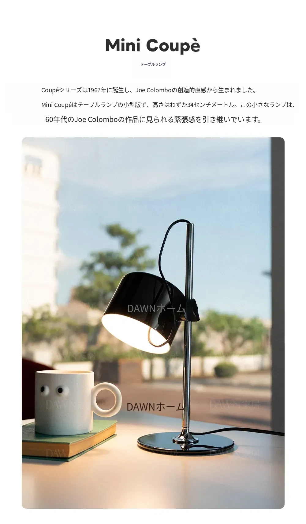 イタリア製クーペ中古ランプ - ベッドルームや書斎にぴったりのレトロでラグジュアリーな調光式テーブルランプ。高級感溢れるデザインで、快適な読書タイムを演出します。