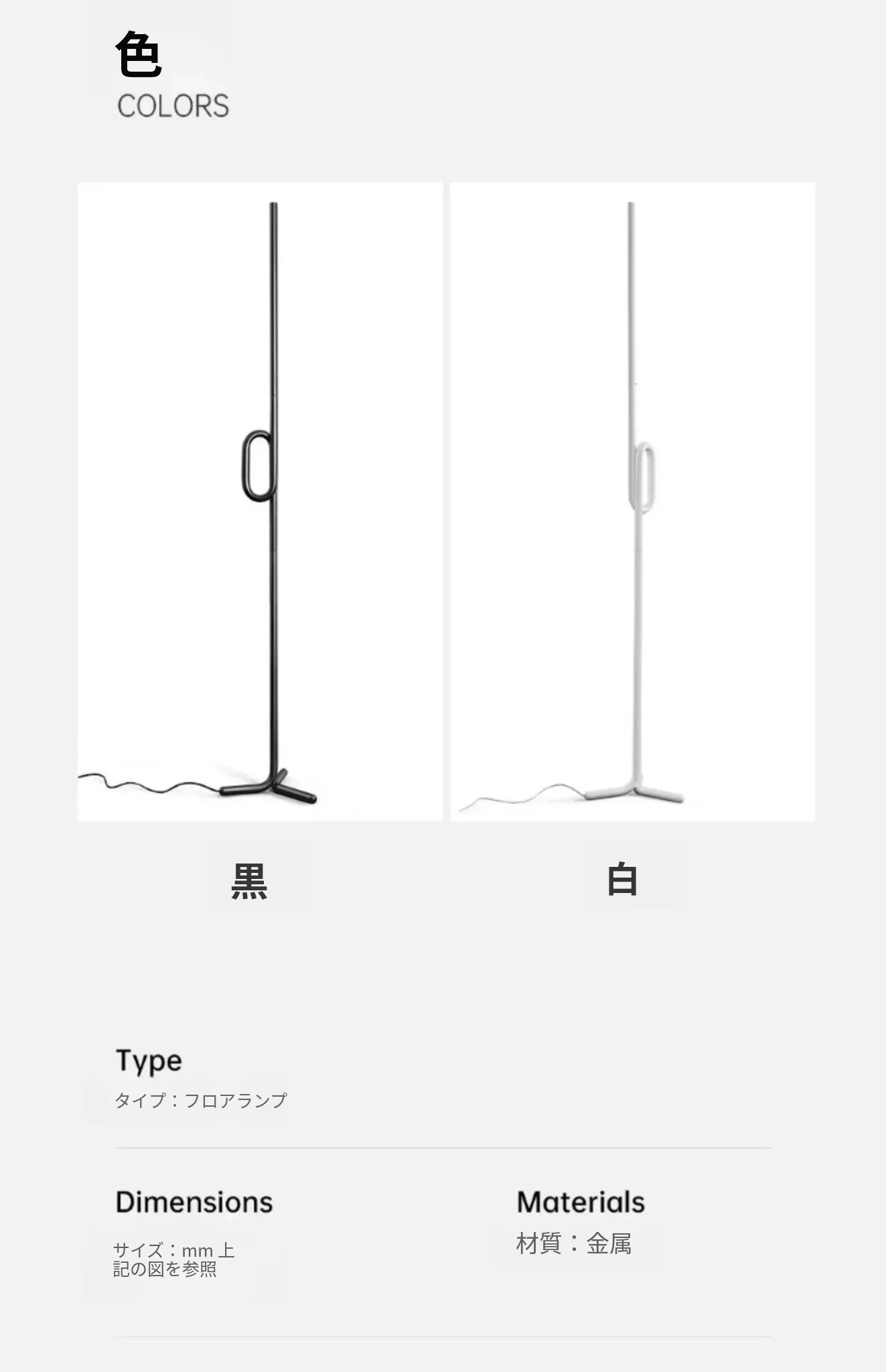 シンプルなモノクロフロアランプ - 北欧モダンデザインのスタイル、書斎や寝室、ベッドサイド、リビング、民宿に最適な個性的な照明器具。洗練された空間を演出します!