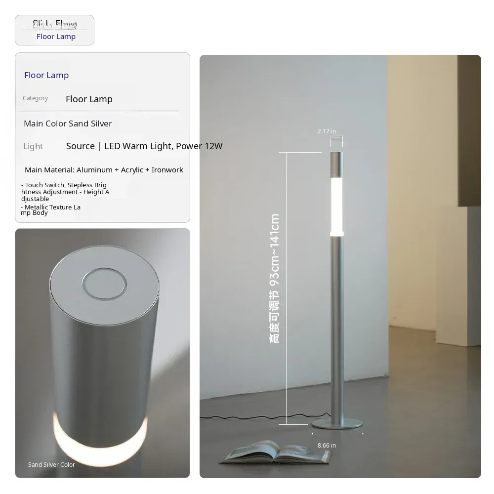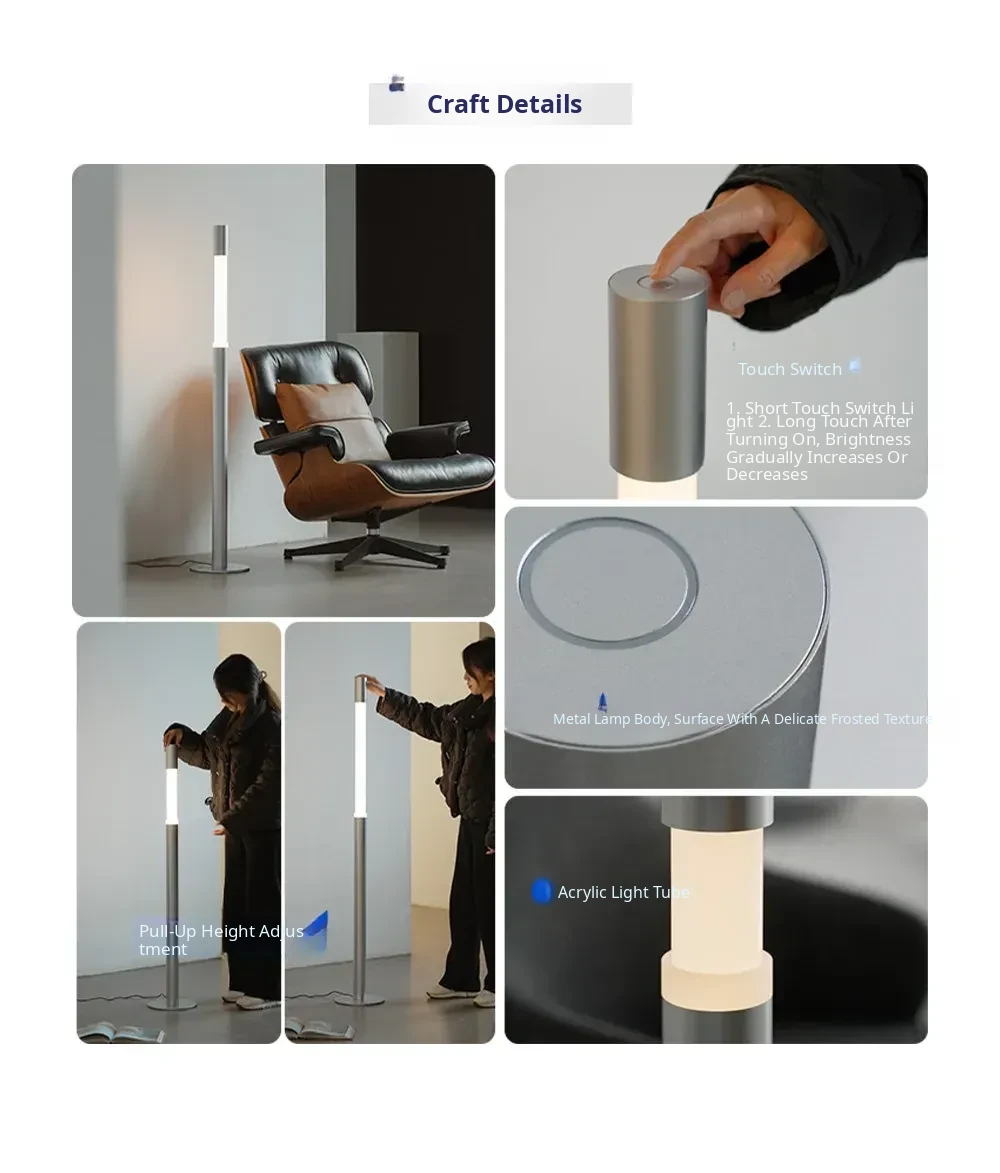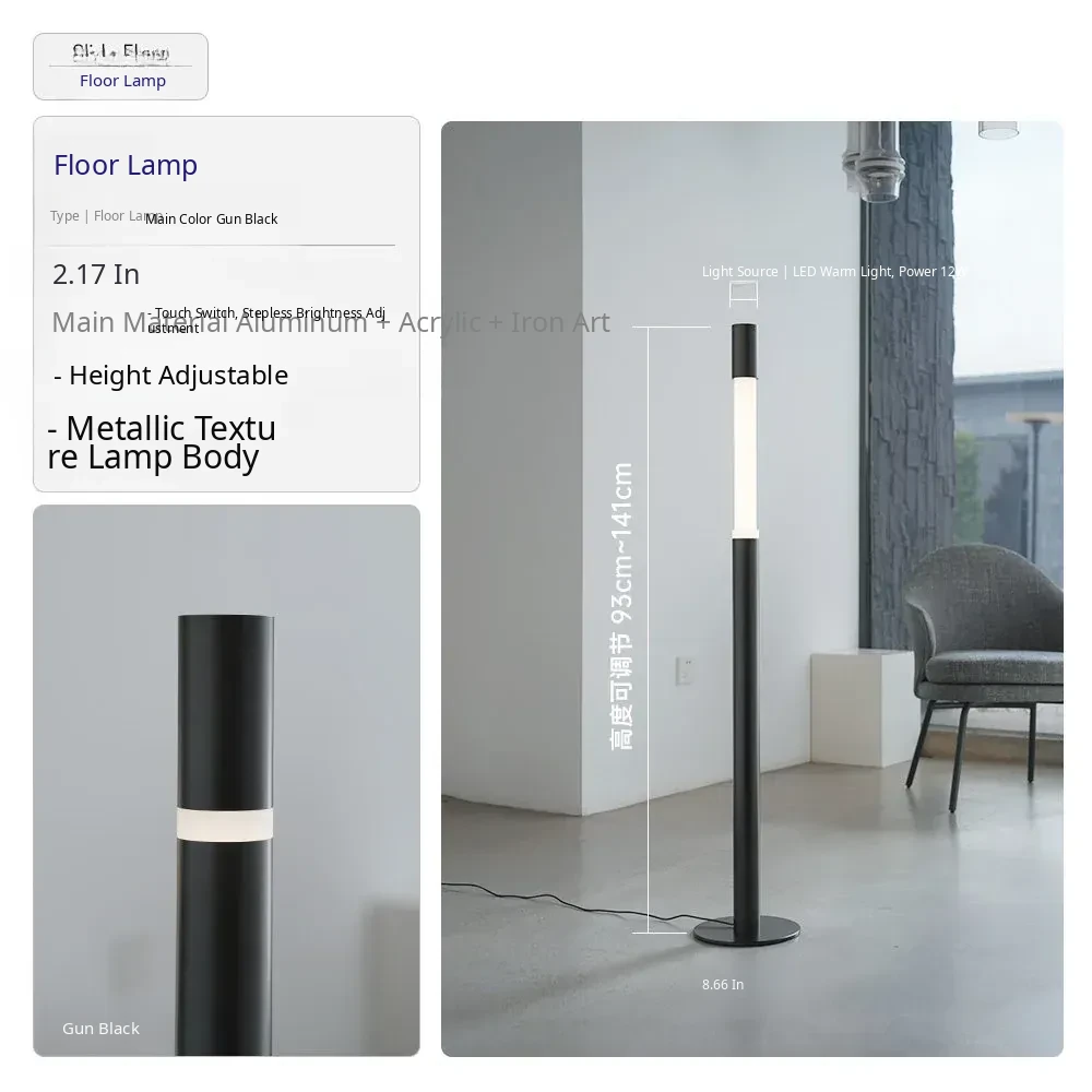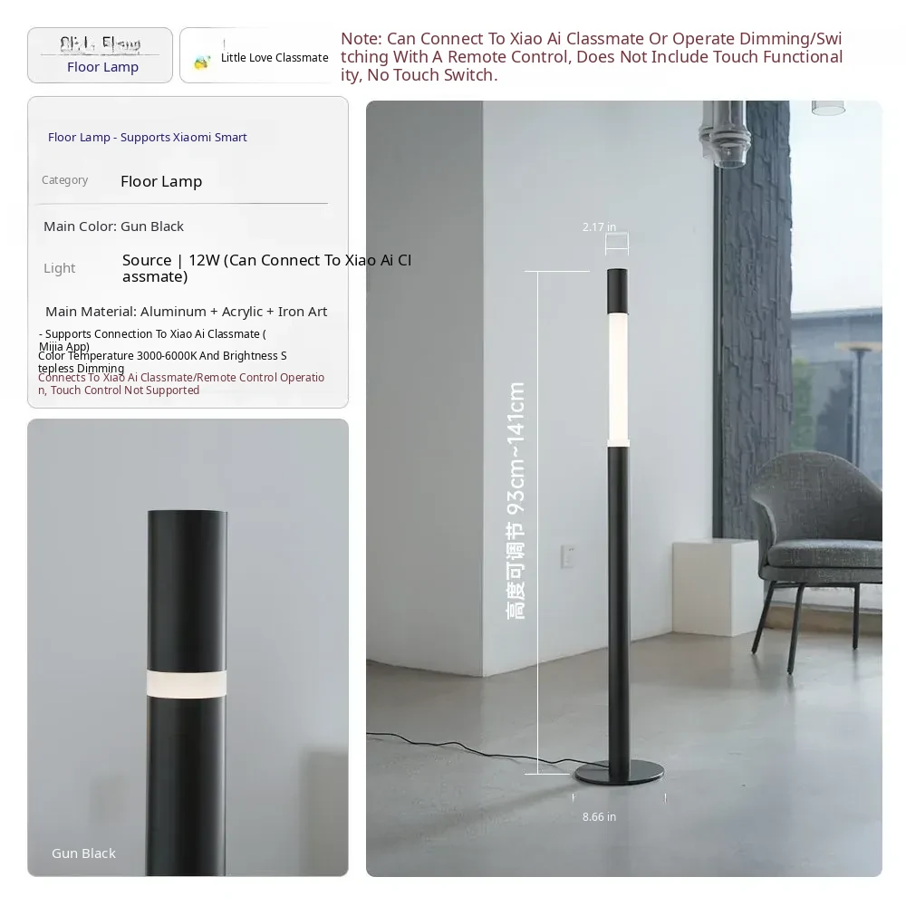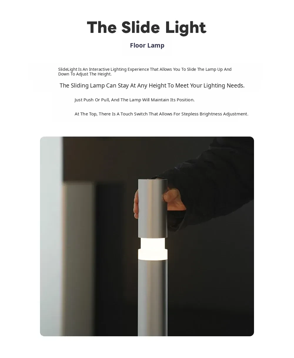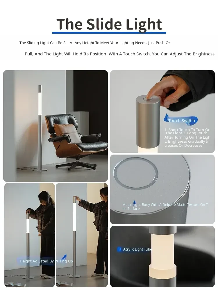 Minimalist Slide Floor Lamp - Elegant Design for Living Room, Bedroom, and Entrance, Adjustable Height with Touch Control, Compatible with Mijia App