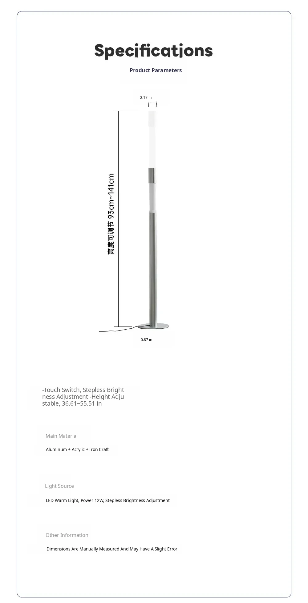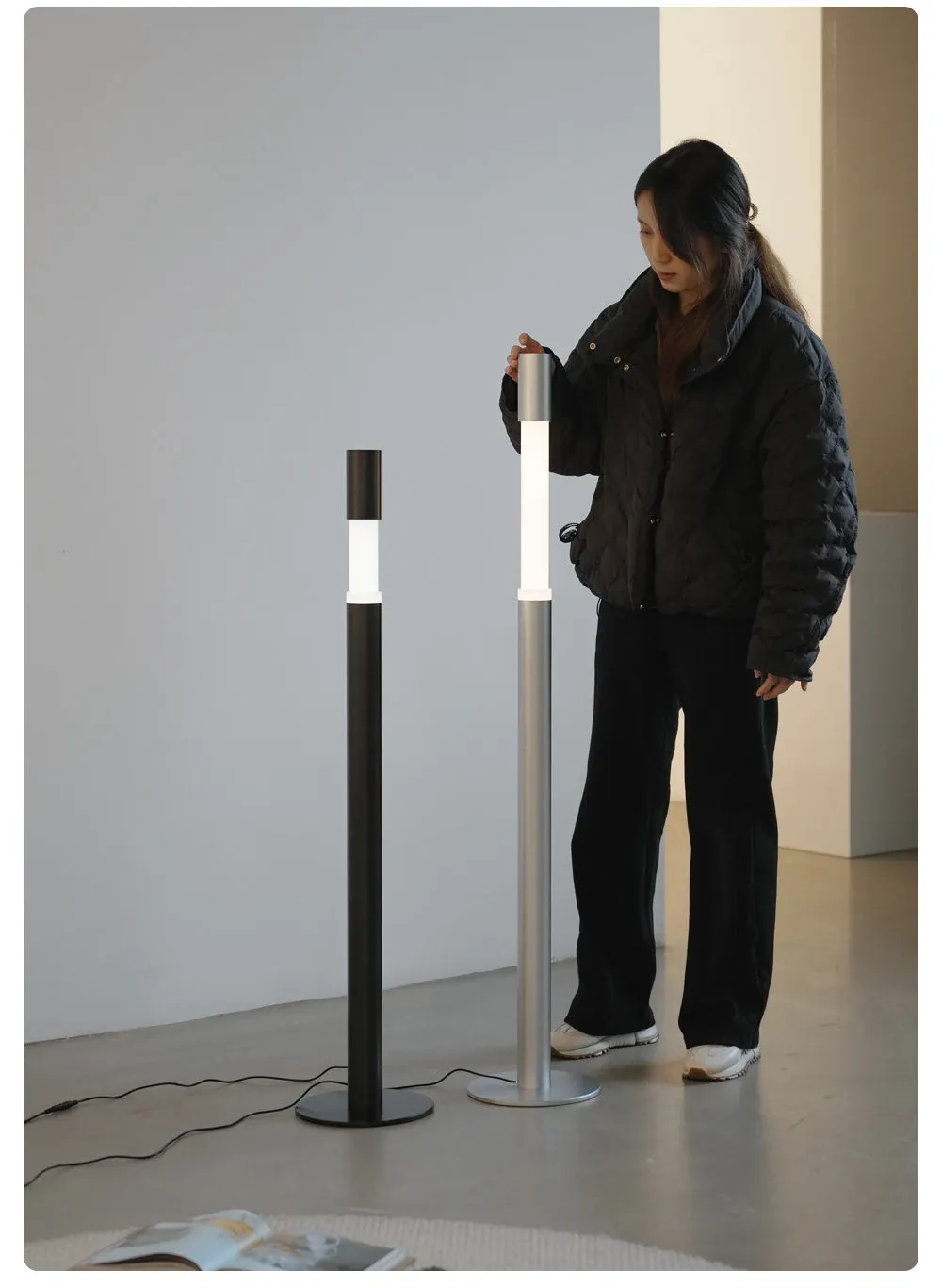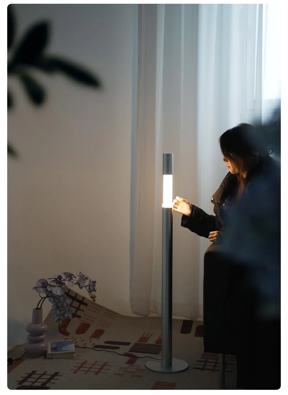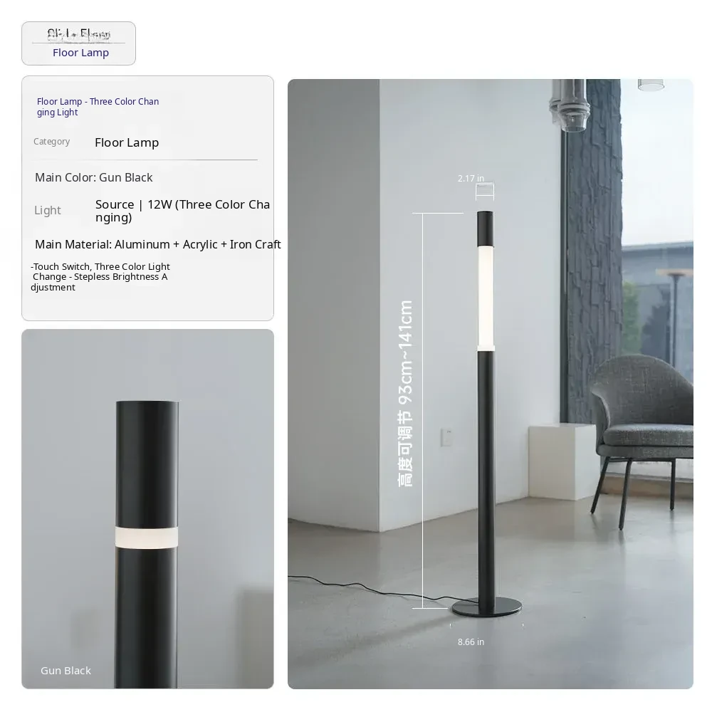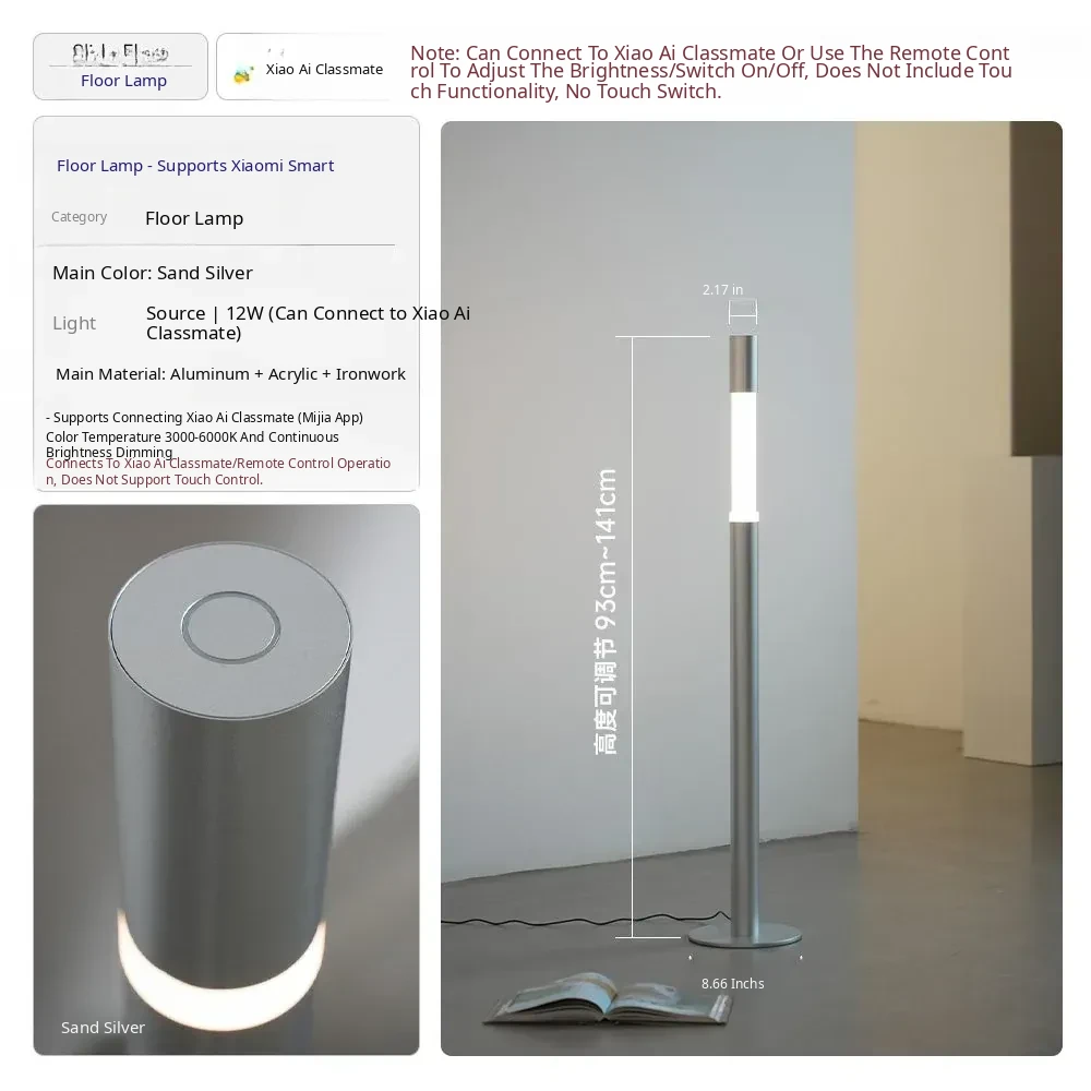 Minimalist Slide Floor Lamp - Elegant Design for Living Room, Bedroom, and Entrance, Adjustable Height with Touch Control, Compatible with Mijia App