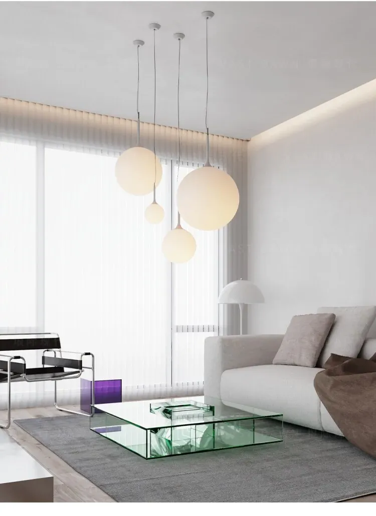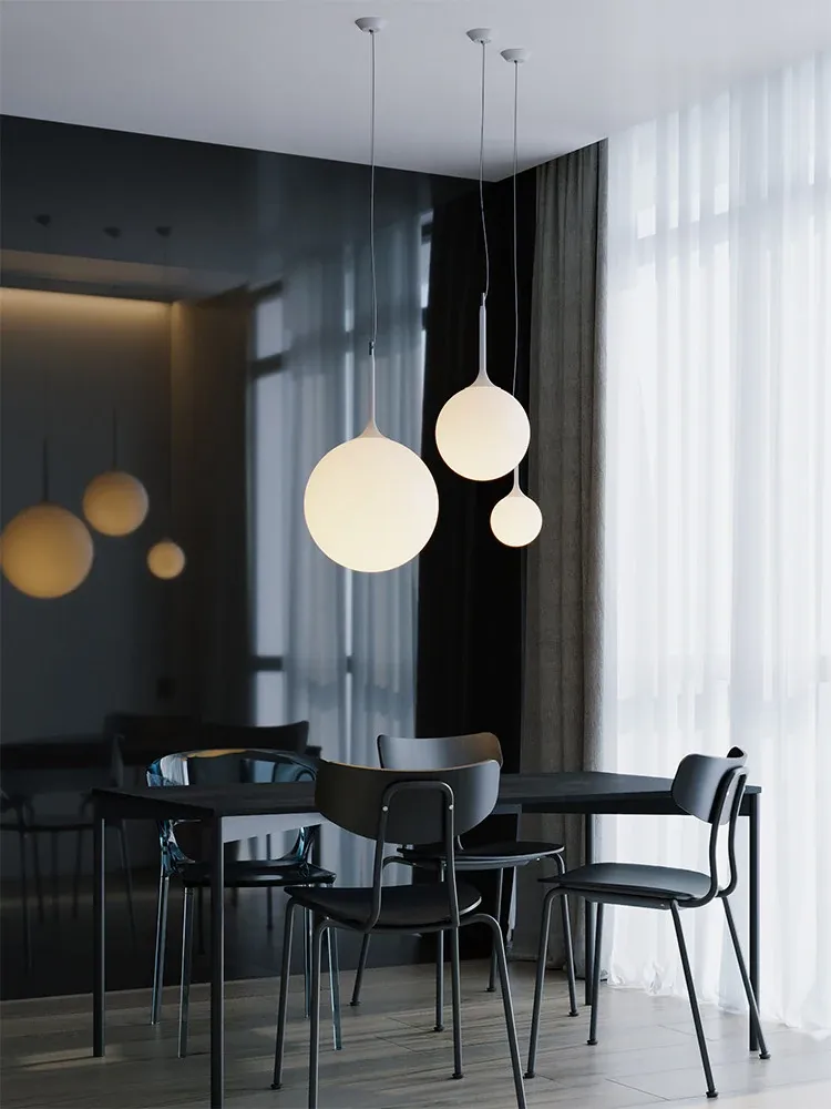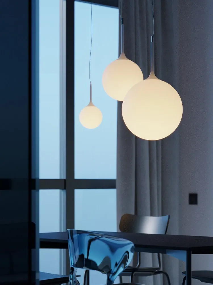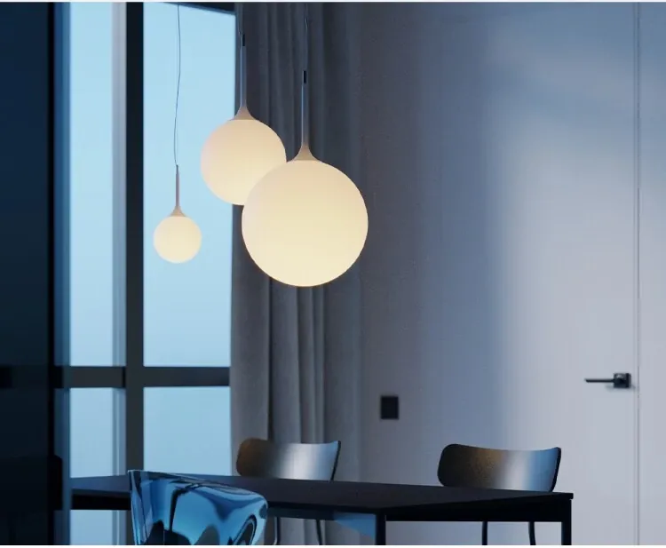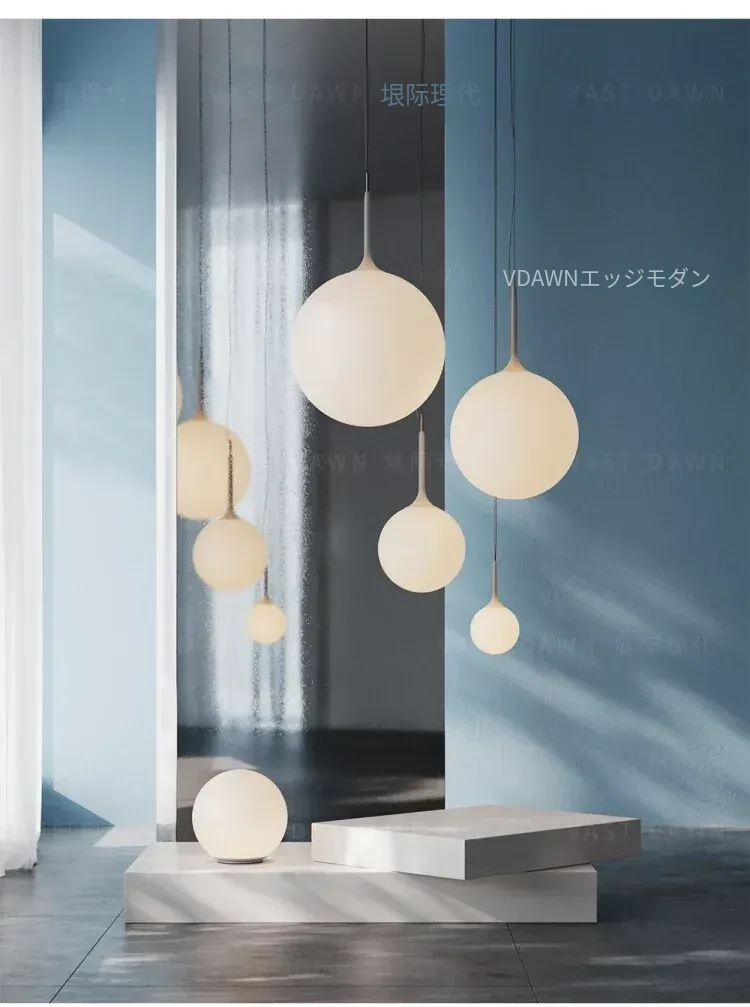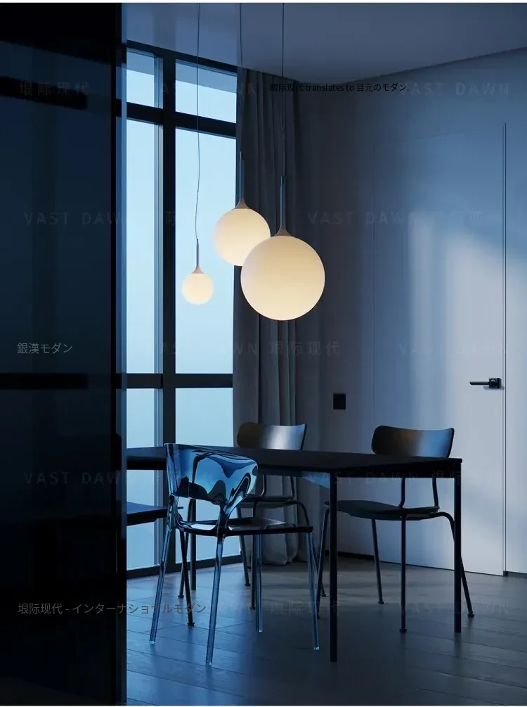 シンプルでモダンな円形ガラスダイニングペンダントライト 北欧スタイルのベッドサイドやバーカウンターにぴったり!アート感溢れる階段照明で、洗練された空間を演出します。