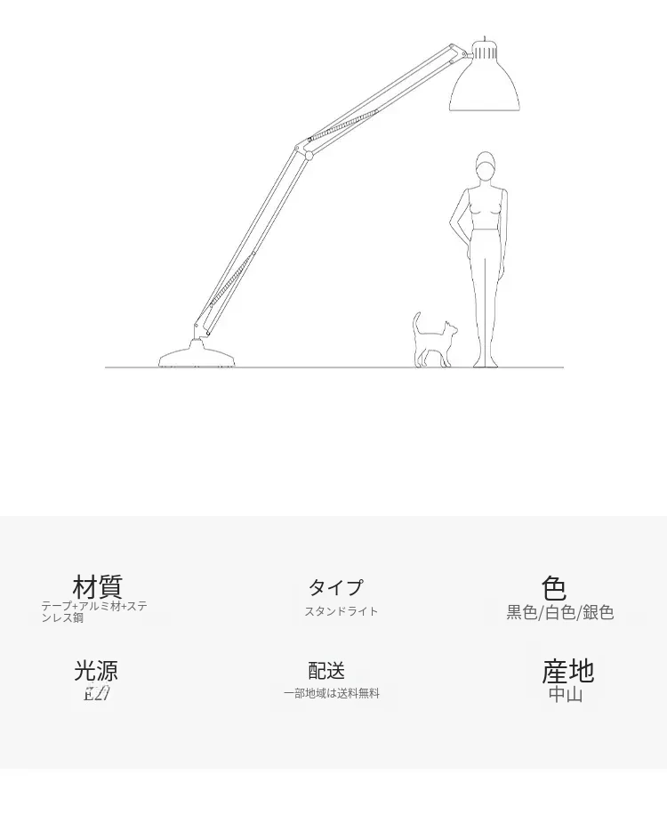 北欧スタイルのクラシックリビングソファにぴったり!デザイナーが手掛けた調節可能な大型フロアランプ。ヴィラや広々としたフラットに最適な伸縮機能で、理想の空間を演出します。