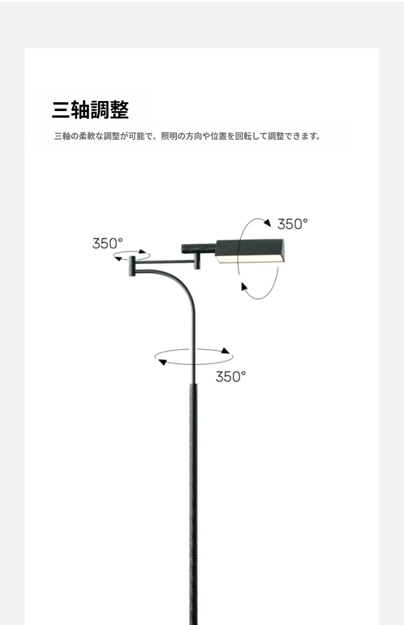 北欧イタリアンスタイルのリビングソファ脇にぴったり!シンプルでモダンなデザインの寝室・書斎用回転式フロアランプ。おしゃれな空間を演出し、心地よい光でリラックスしたひとときを。