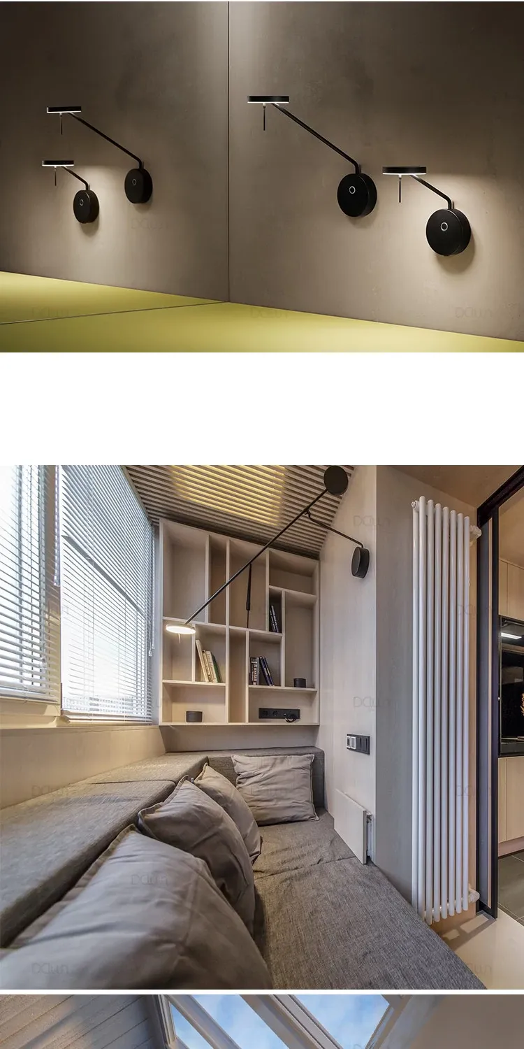 北欧風ミニマリストデザインの調光可能なロングアーム壁掛けライト|シンプルでモダンな寝室のベッドサイドランプ、心地よい雰囲気作りに最適!