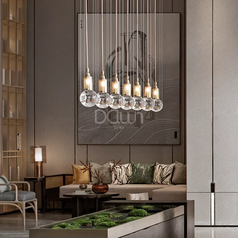 北欧風モダンシンプルデザインの個性的なガラスボール吊り下げライト - レストラン、ホテルのフロント、寝室に最適!おしゃれで洗練された雰囲気を演出し、空間を美しく照らします。