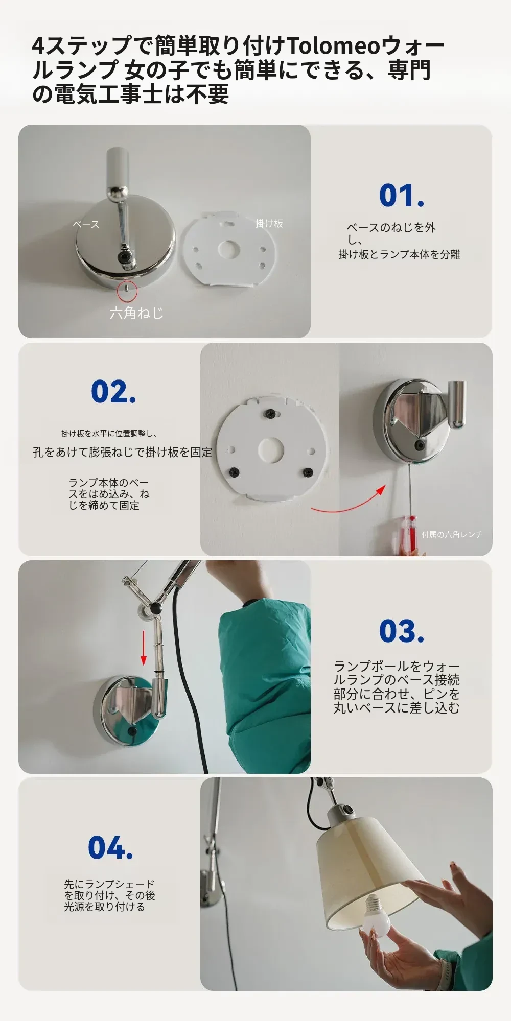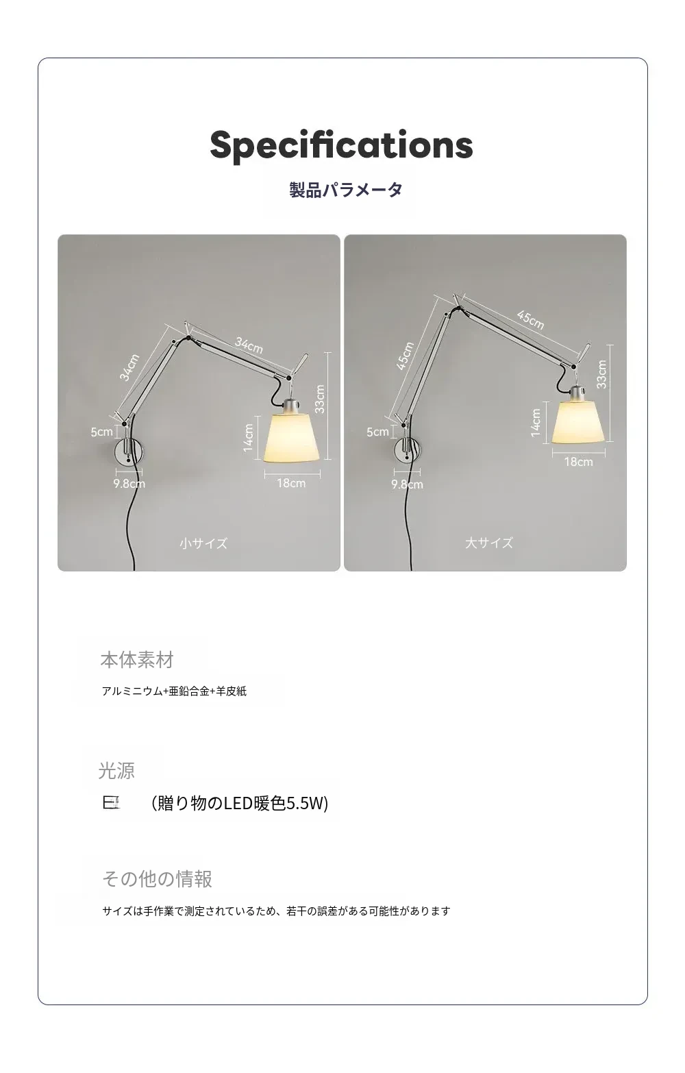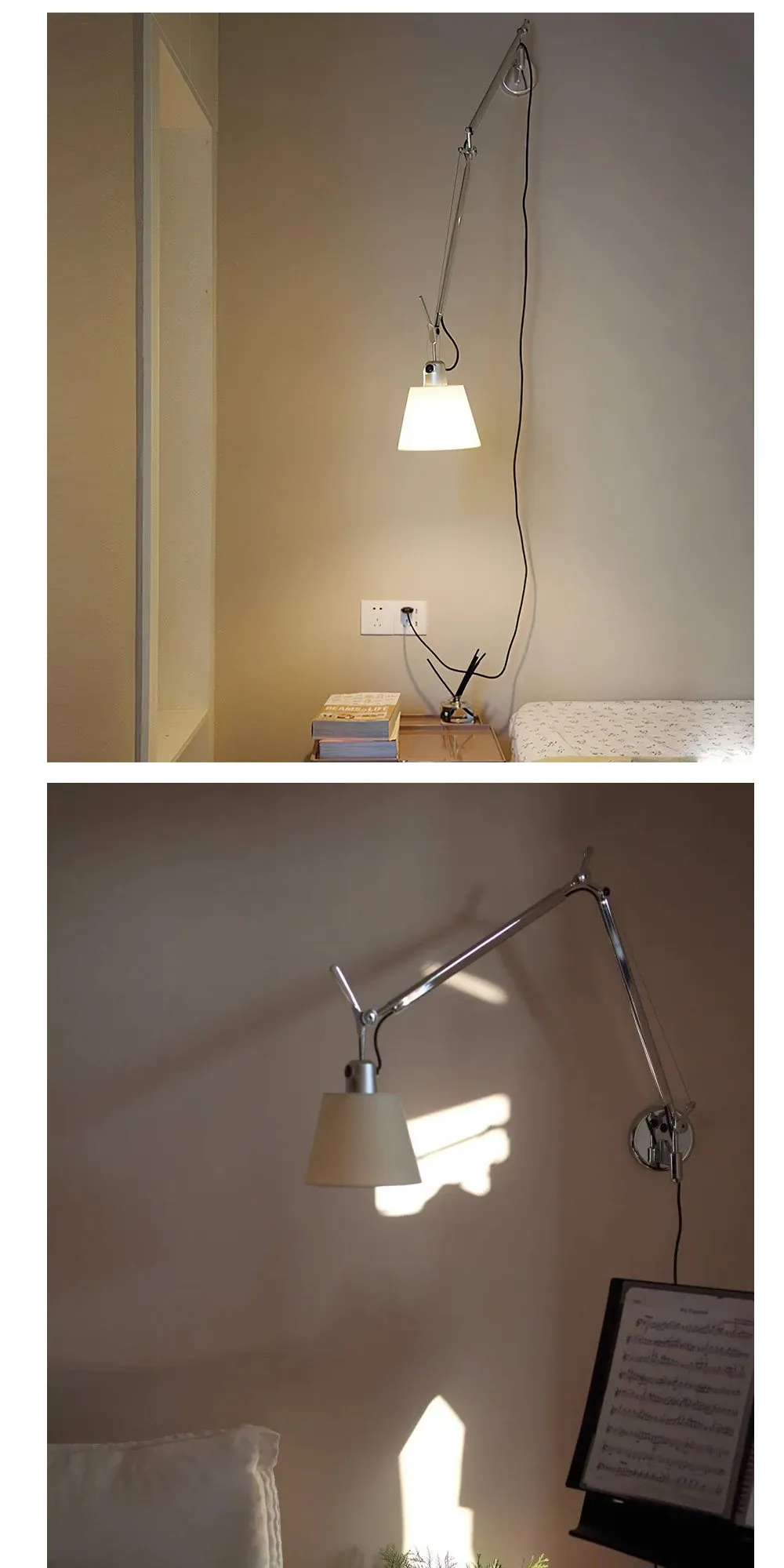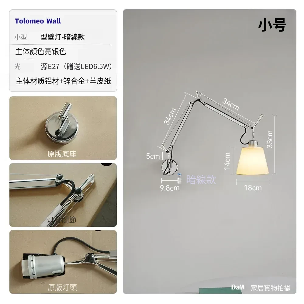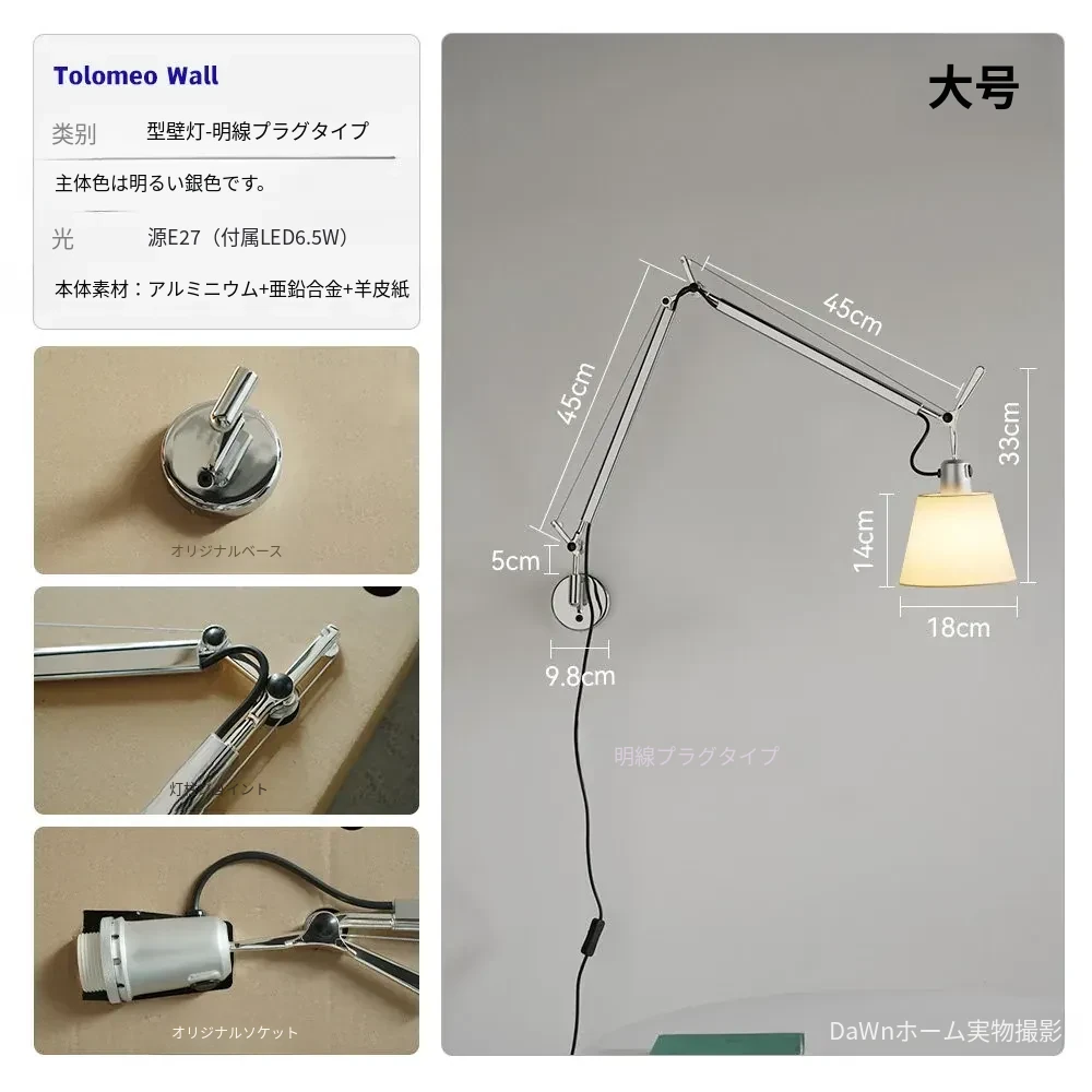 大型アームウォールランプ - ライトワイヤープラグタイプ