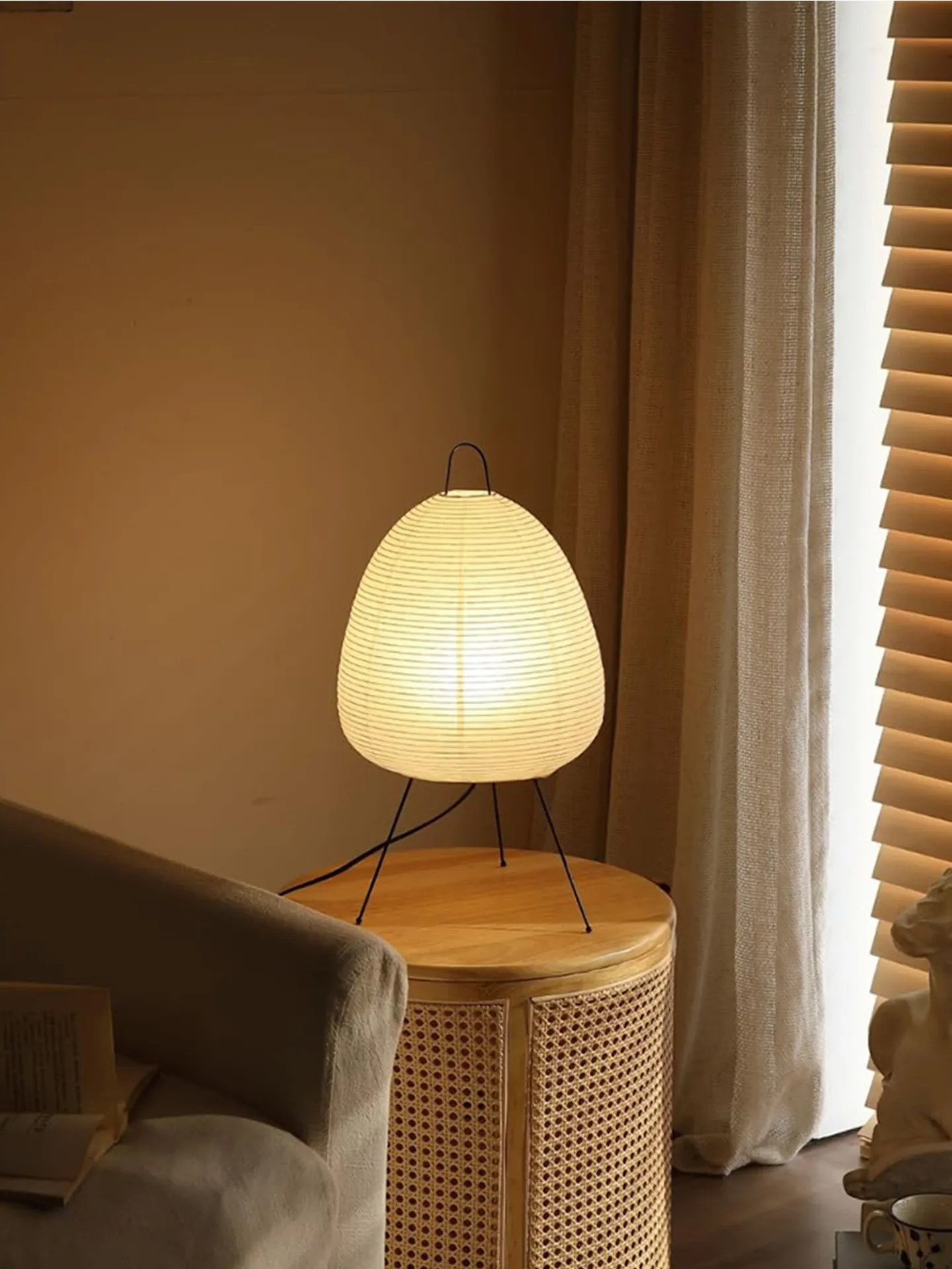 アンティーク風の野口勇デザインのスタンドライト、寝室やリビングのソファ横にぴったり!高級感あふれる侘び寂びスタイルのインテリアアクセントで、特別な空間を演出します。